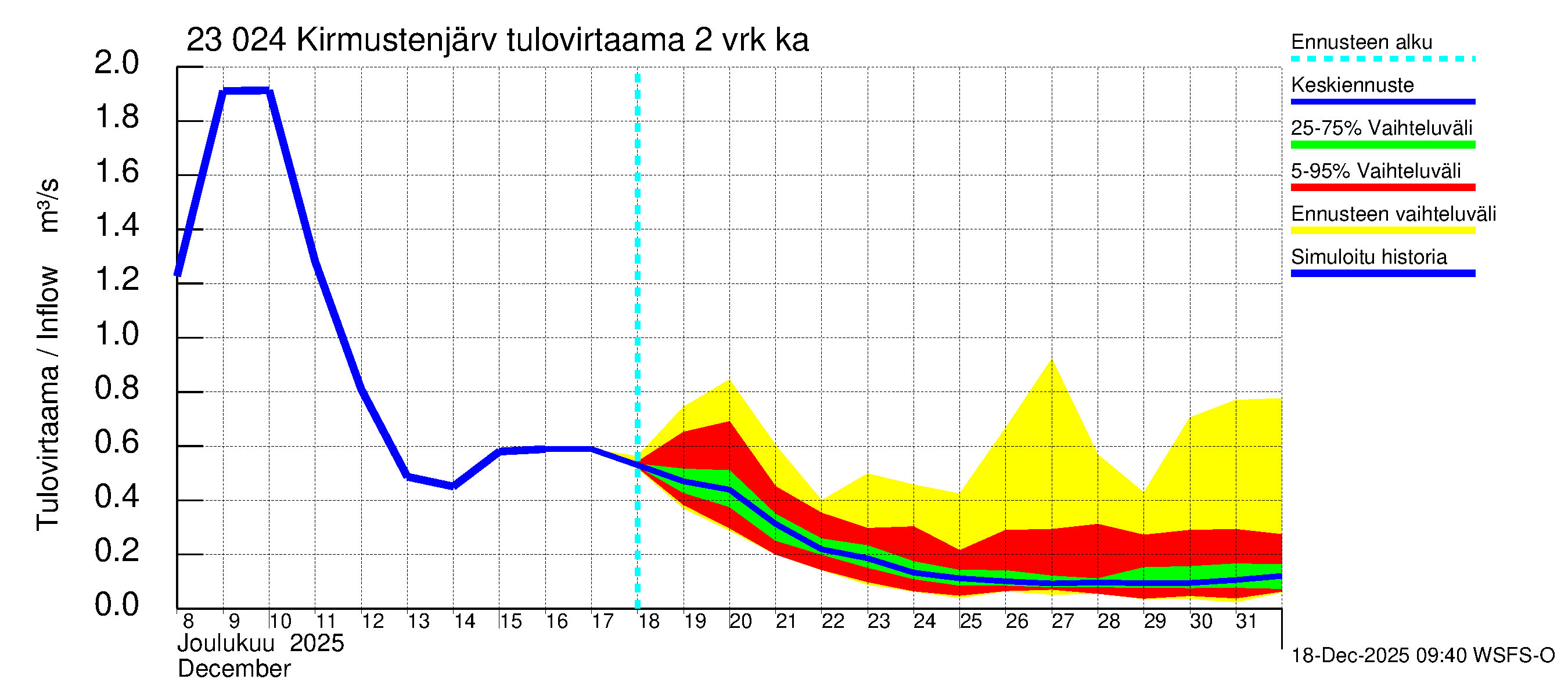 Karjaanjoen vesistöalue - Kirmustenjärvi: Tulovirtaama (usean vuorokauden liukuva keskiarvo) - jakaumaennuste