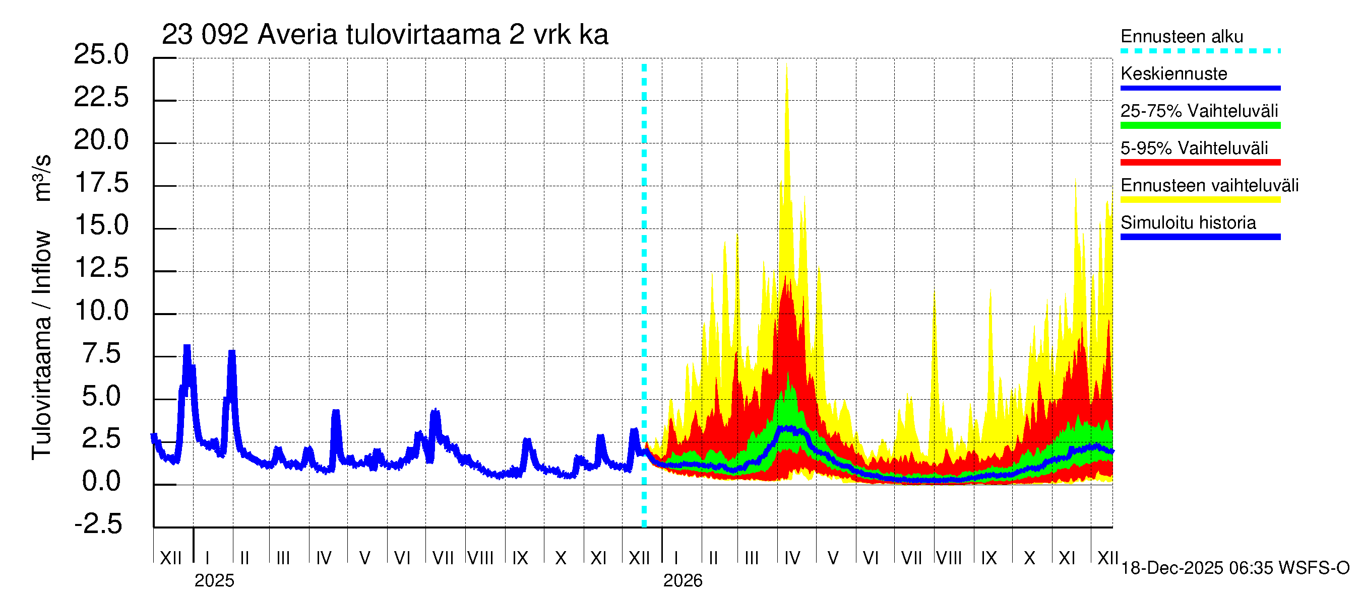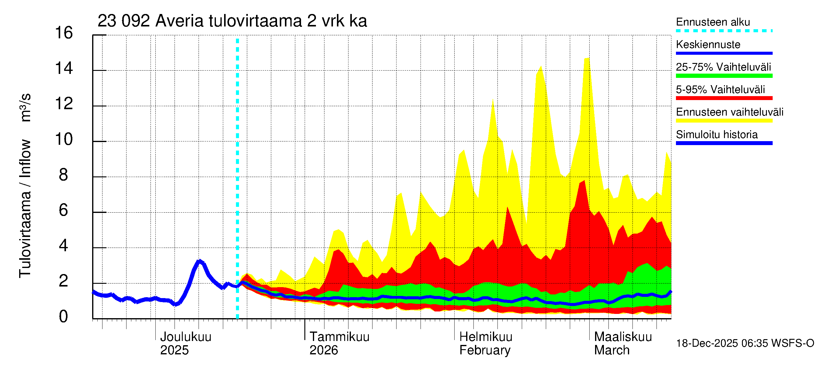 Karjaanjoen vesistöalue - Averia: Tulovirtaama (usean vuorokauden liukuva keskiarvo) - jakaumaennuste