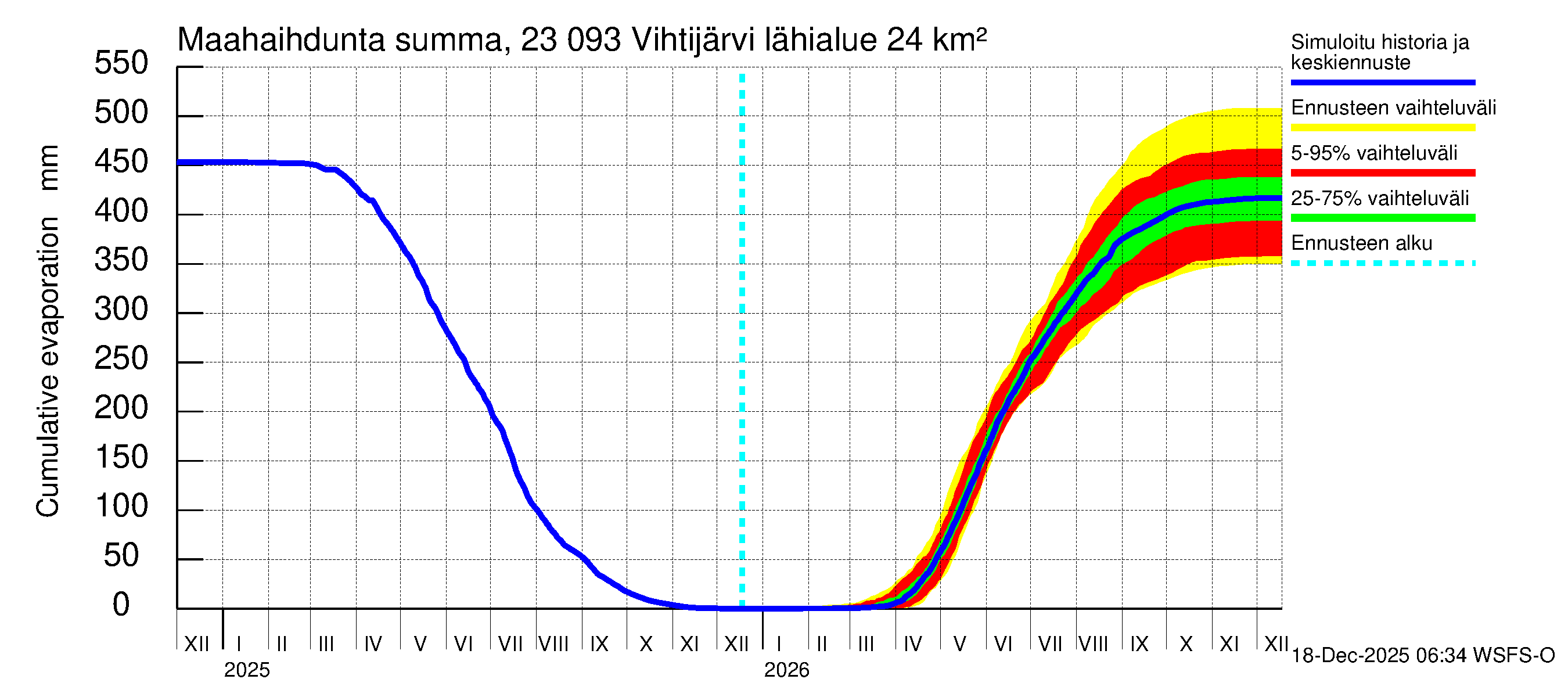 Karjaanjoen vesistöalue - Vihtijärvi: Haihdunta maa-alueelta - summa