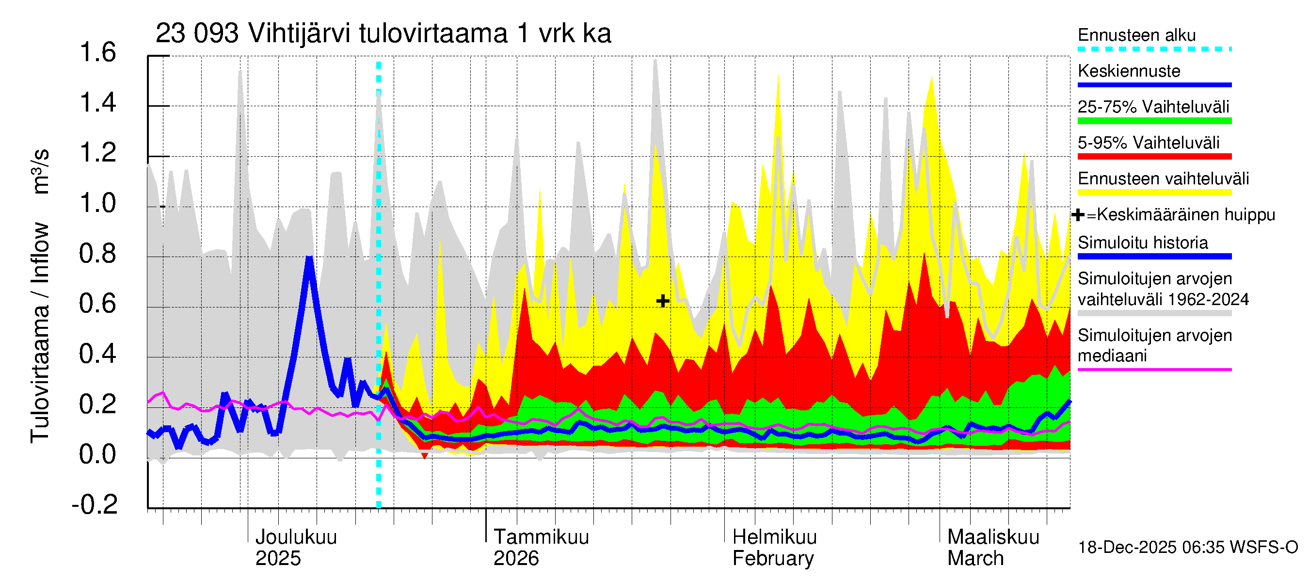 Karjaanjoen vesistöalue - Vihtijärvi: Tulovirtaama (usean vuorokauden liukuva keskiarvo) - jakaumaennuste