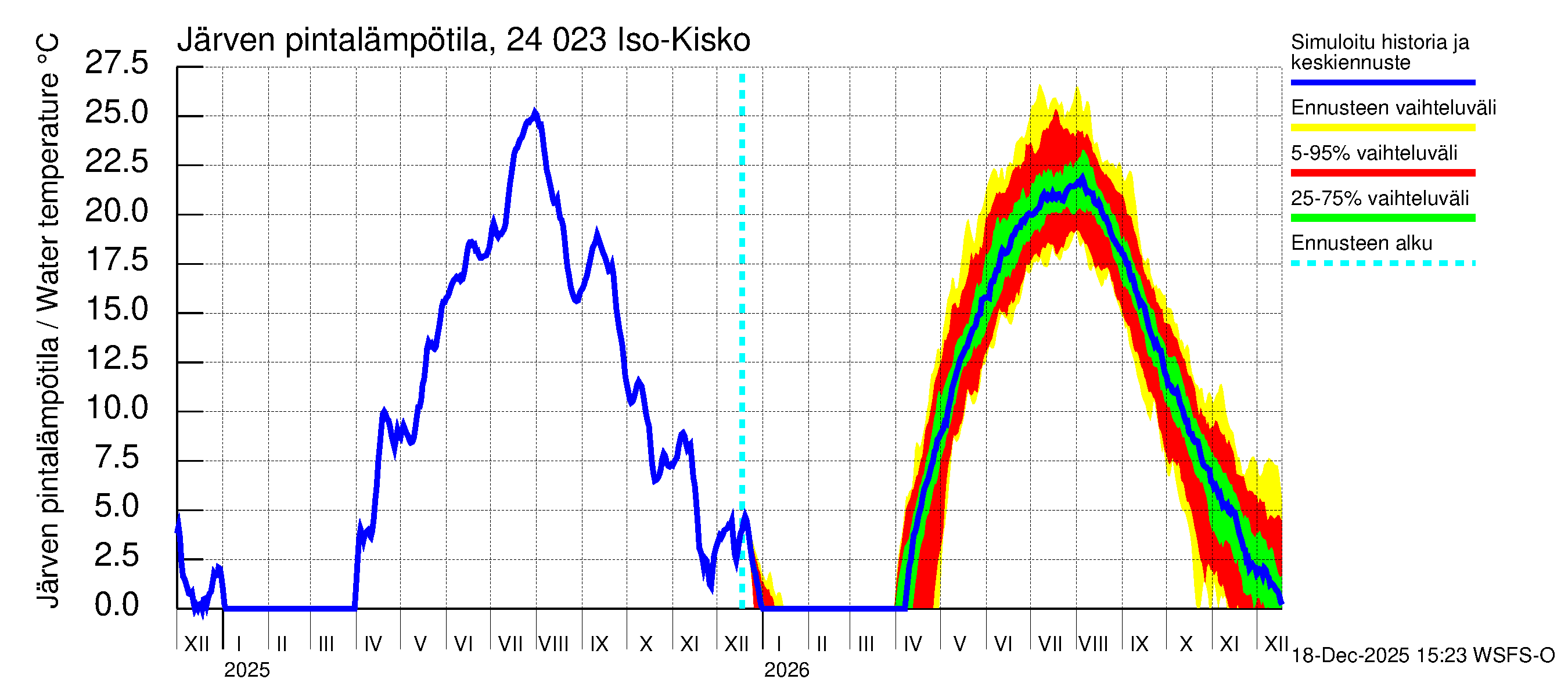 Kiskonjoen vesistöalue - Iso-Kisko: Järven pintalämpötila