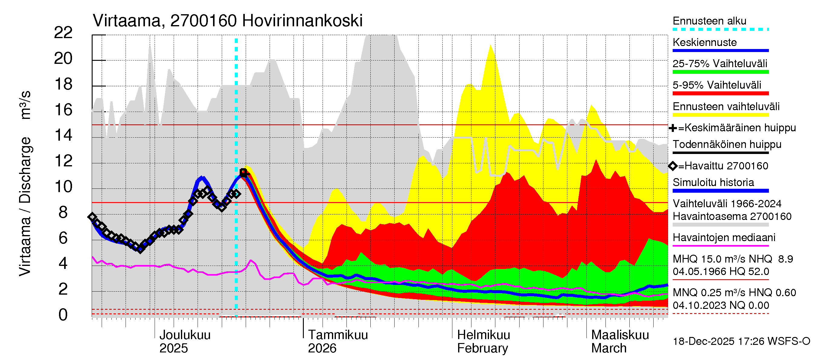 Paimionjoen vesistöalue - Hovirinnankoski: Virtaama / juoksutus - huippujen keski- ja ääriennusteet