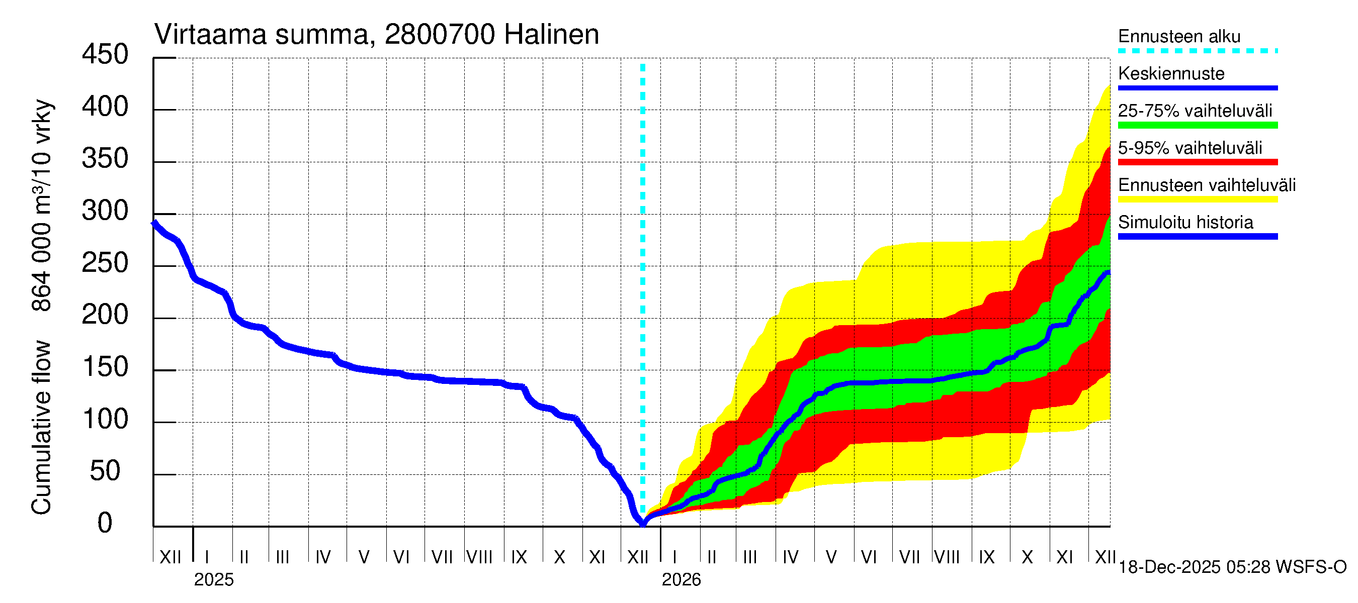 Aurajoen vesistöalue - Halinen: Virtaama / juoksutus - jakaumaennuste
