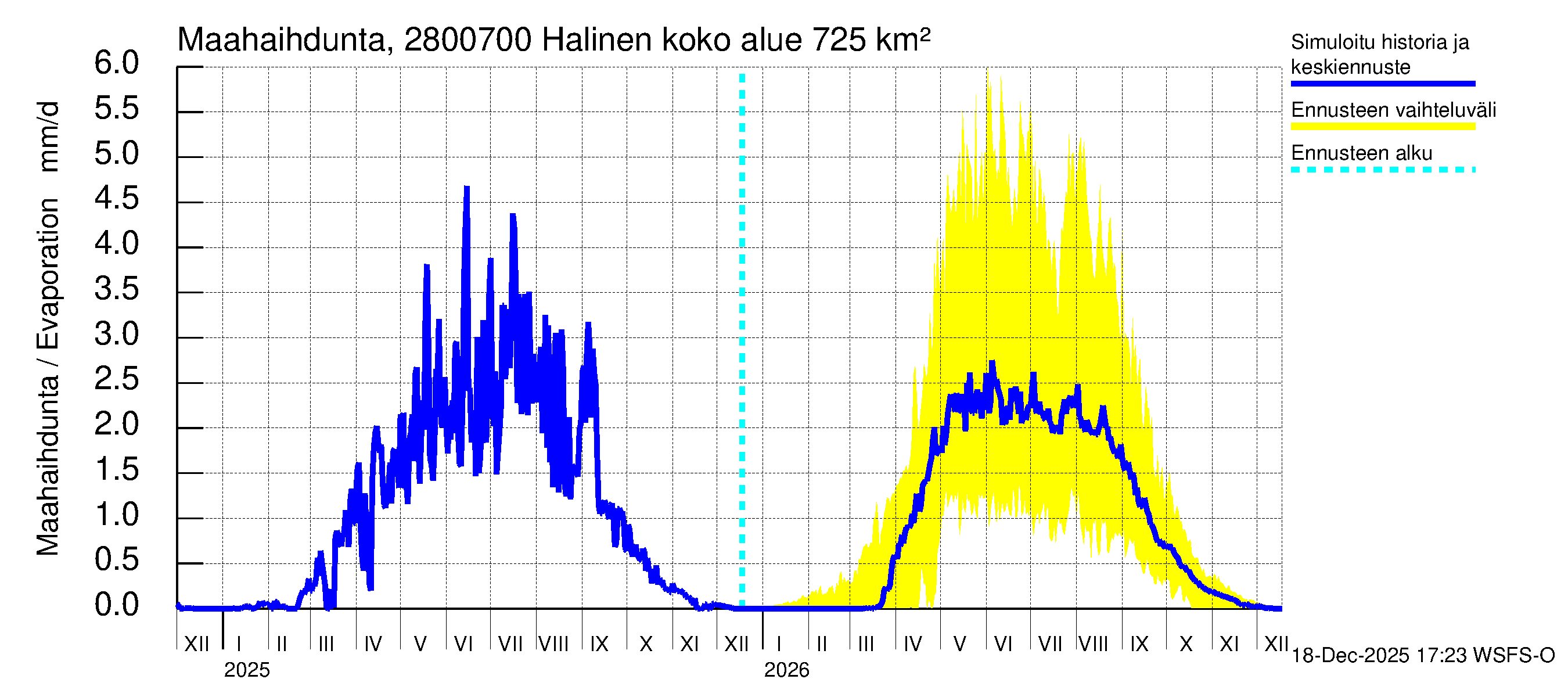 Aurajoen vesistöalue - Halinen: Haihdunta maa-alueelta