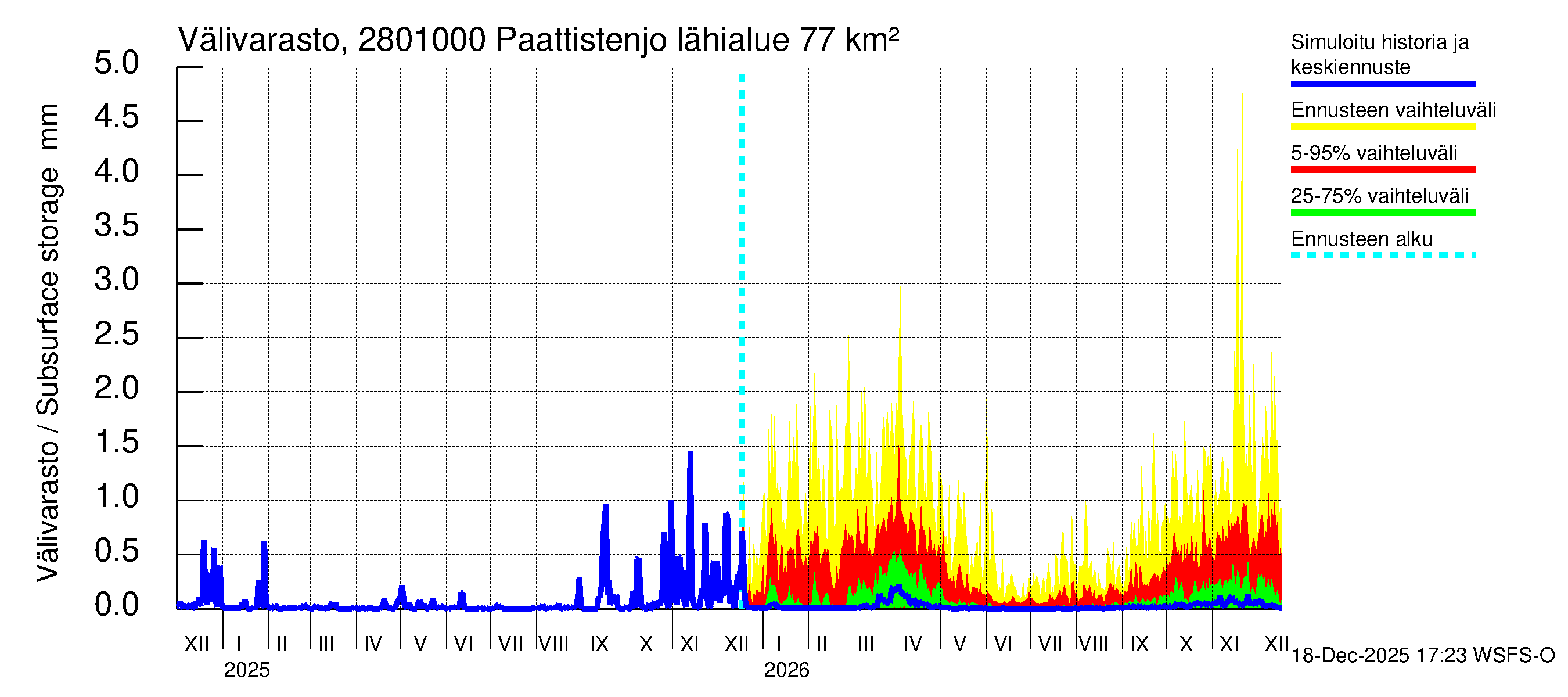 Aurajoen vesistöalue - Paattistenjoki mittapato: Vedenkorkeus - jakaumaennuste