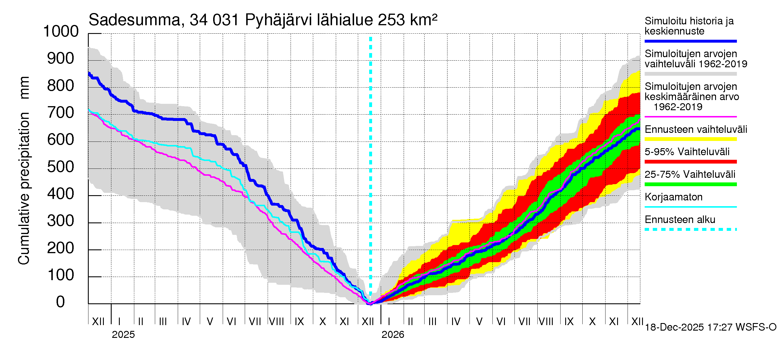 Eurajoen vesistöalue - Pyhäjärvi: Sade - summa