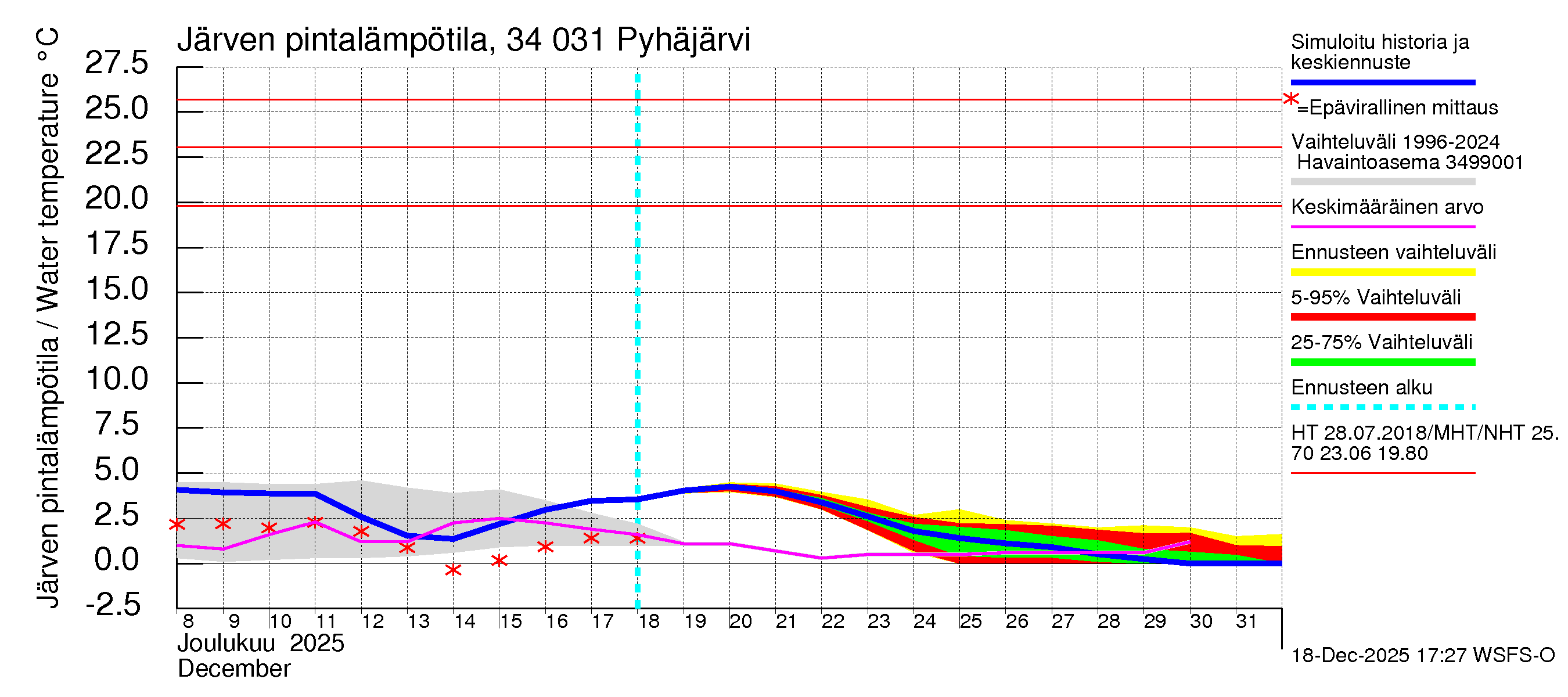 Eurajoen vesistöalue - Pyhäjärvi: Järven pintalämpötila
