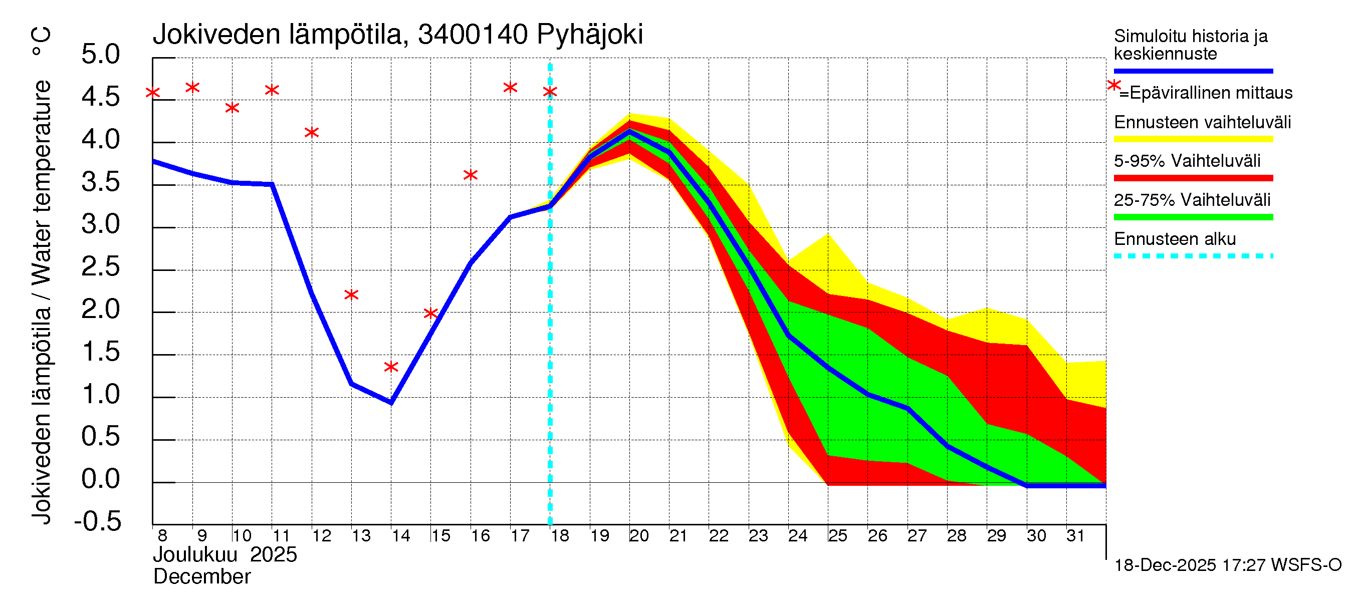 Eurajoen vesistöalue - Pyhäjoki: Jokiveden lämpötila