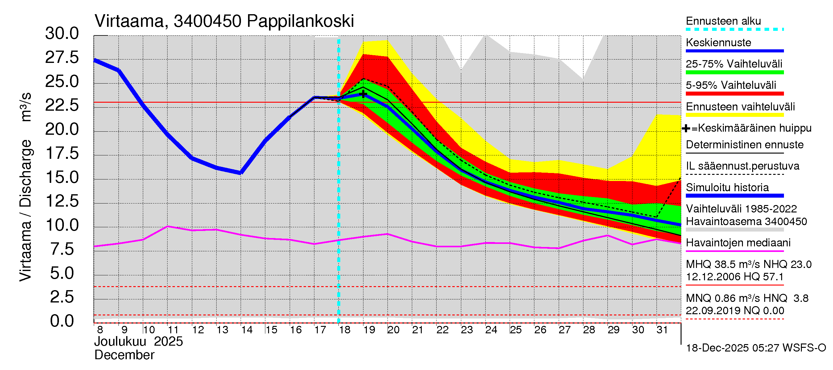 Eurajoen vesistöalue - Pappilankoski: Virtaama / juoksutus - huippujen keski- ja ääriennusteet