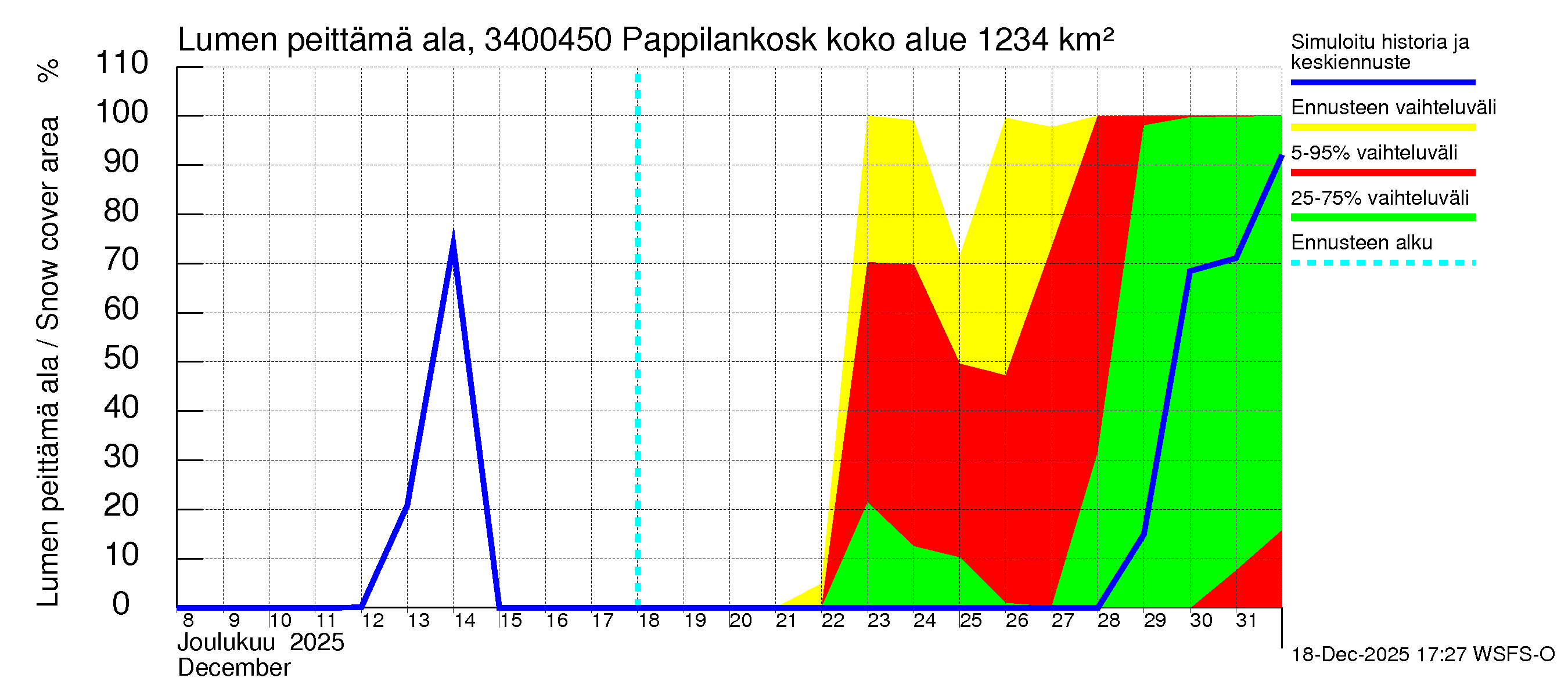 Eurajoen vesistöalue - Pappilankoski: Lumen peittämä ala