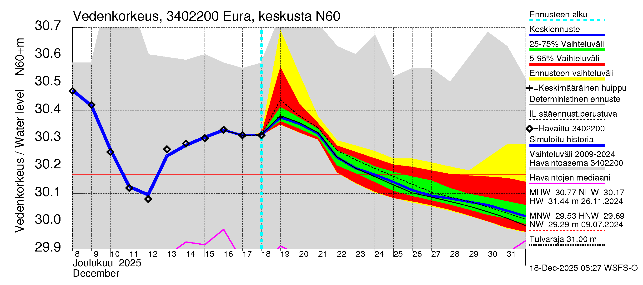 Eurajoen vesistöalue - Eura keskusta: Vedenkorkeus - jakaumaennuste