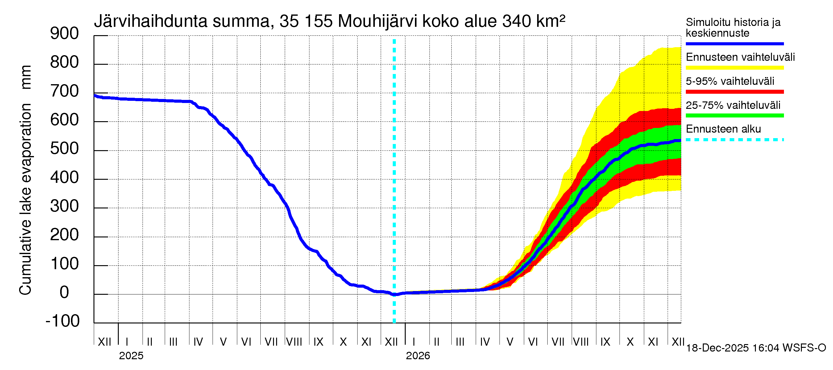 Kokemäenjoen vesistöalue - Mouhijärvi: Järvihaihdunta - summa