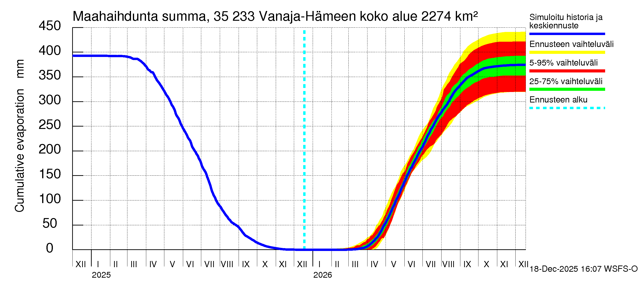 Kokemäenjoen vesistöalue - Vanaja / Hämeenlinna: Haihdunta maa-alueelta - summa