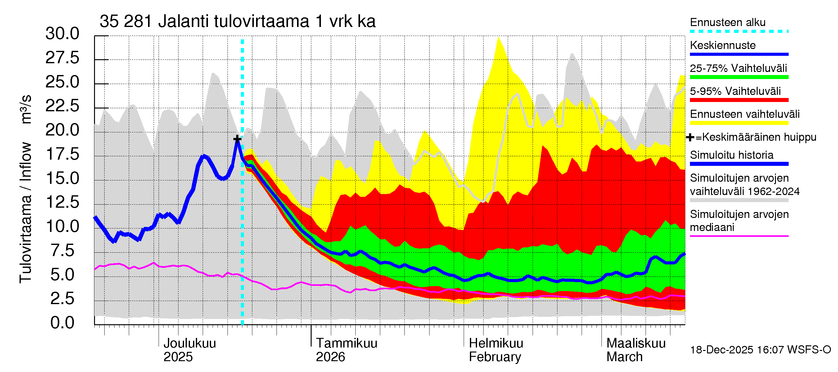 Kokemäenjoen vesistöalue - Jalanti: Tulovirtaama (usean vuorokauden liukuva keskiarvo) - jakaumaennuste