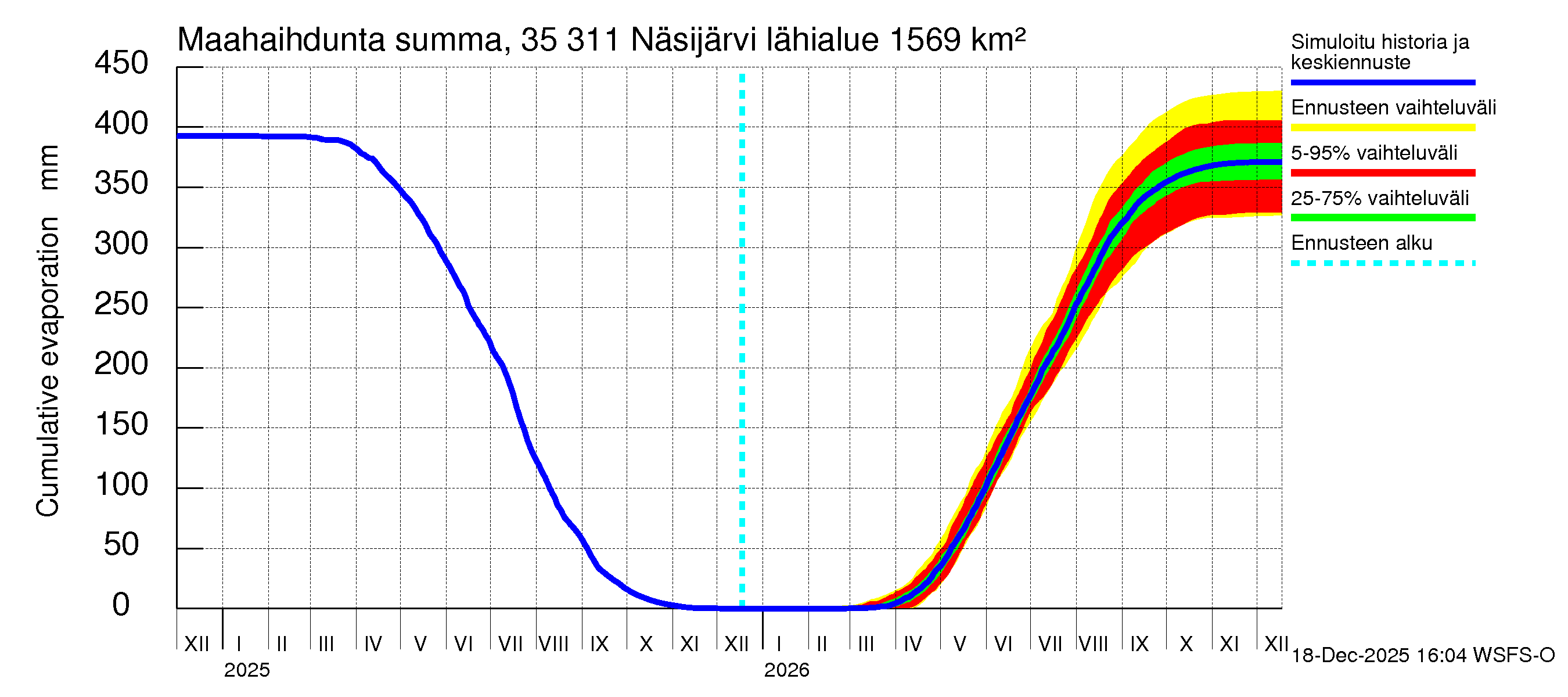 Kokemäenjoen vesistöalue - Näsijärvi: Haihdunta maa-alueelta - summa