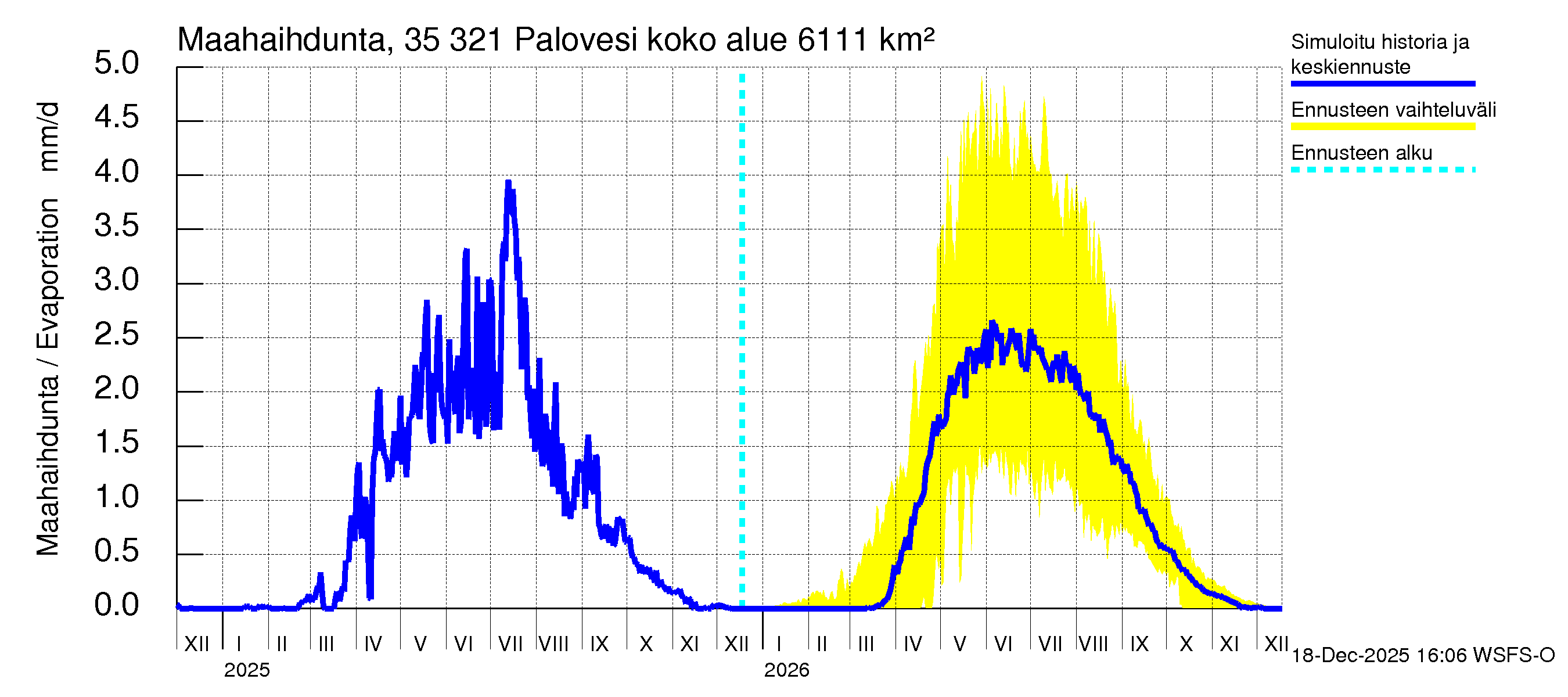 Kokemäenjoen vesistöalue - Ruovesi-Palovesi: Haihdunta maa-alueelta - summa