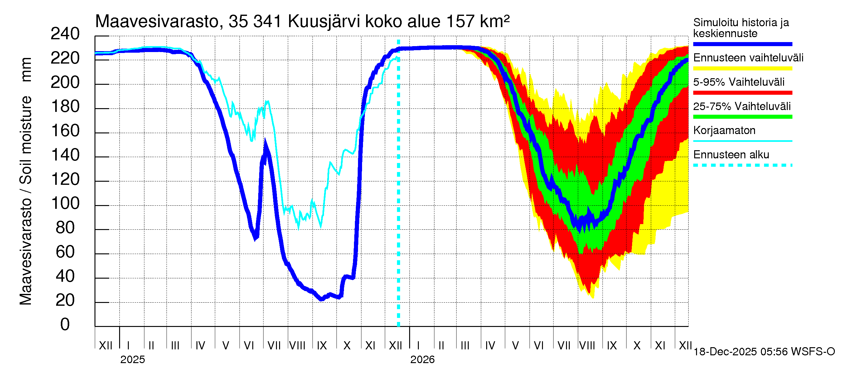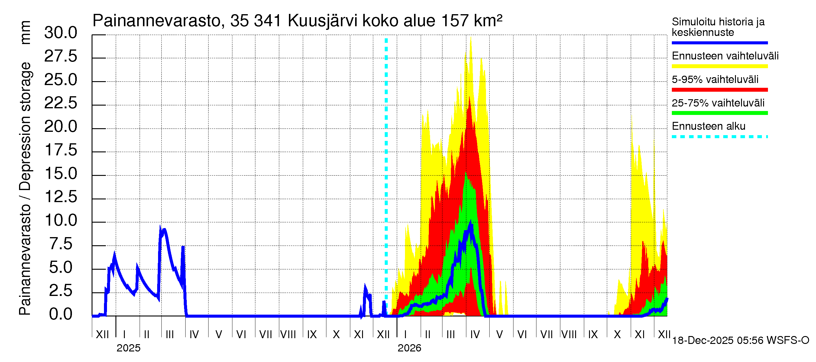 Kokemäenjoen vesistöalue - Kuusjärvi: Vedenkorkeus - jakaumaennuste