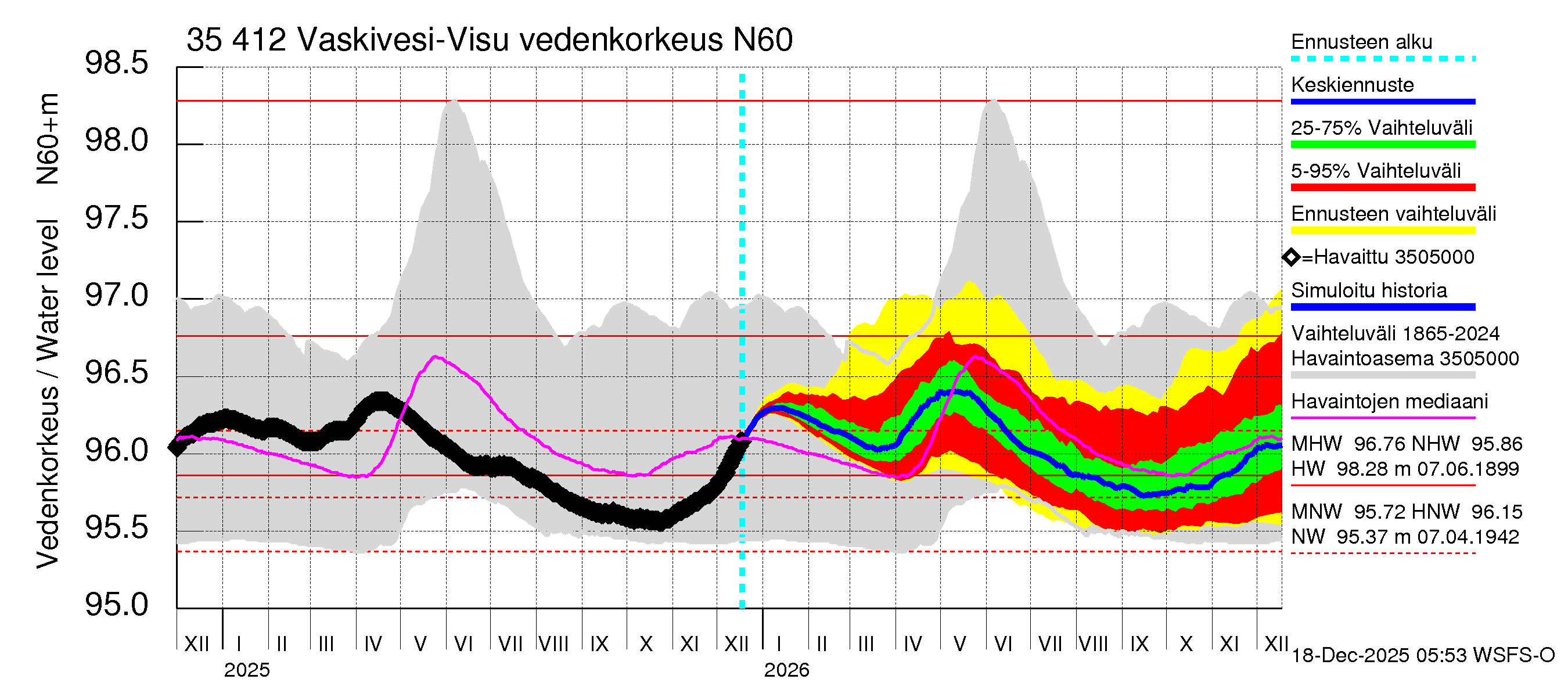 Kokemäenjoen vesistöalue - Tarjanne, Visuvesi: Vedenkorkeus - huippujen keski- ja ääriennusteet