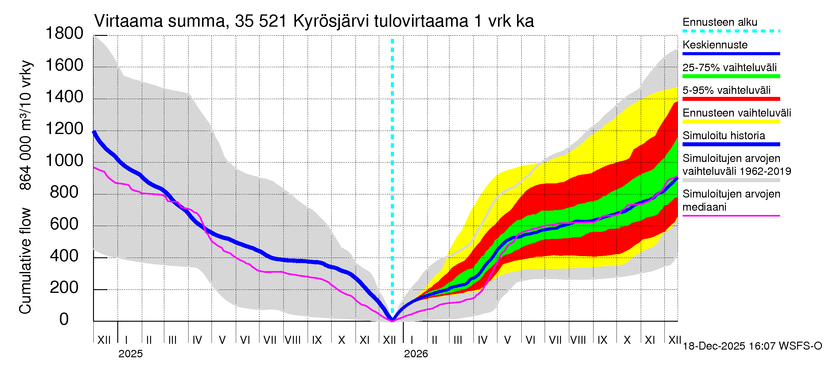 Kokemäenjoen vesistöalue - Kyrösjärvi: Lähtövirtaama / juoksutus - jakaumaennuste
