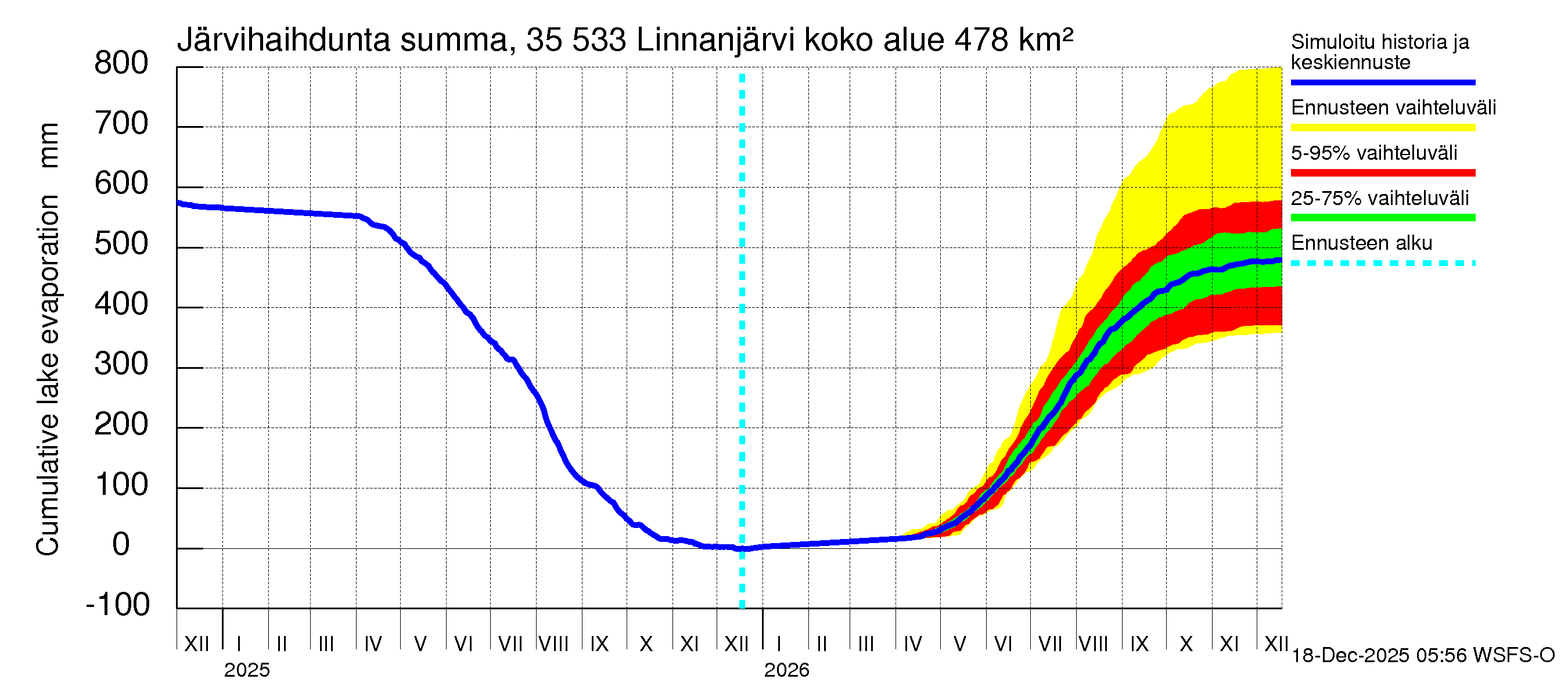 Kokemäenjoen vesistöalue - Linnanjärvi: Järvihaihdunta - summa