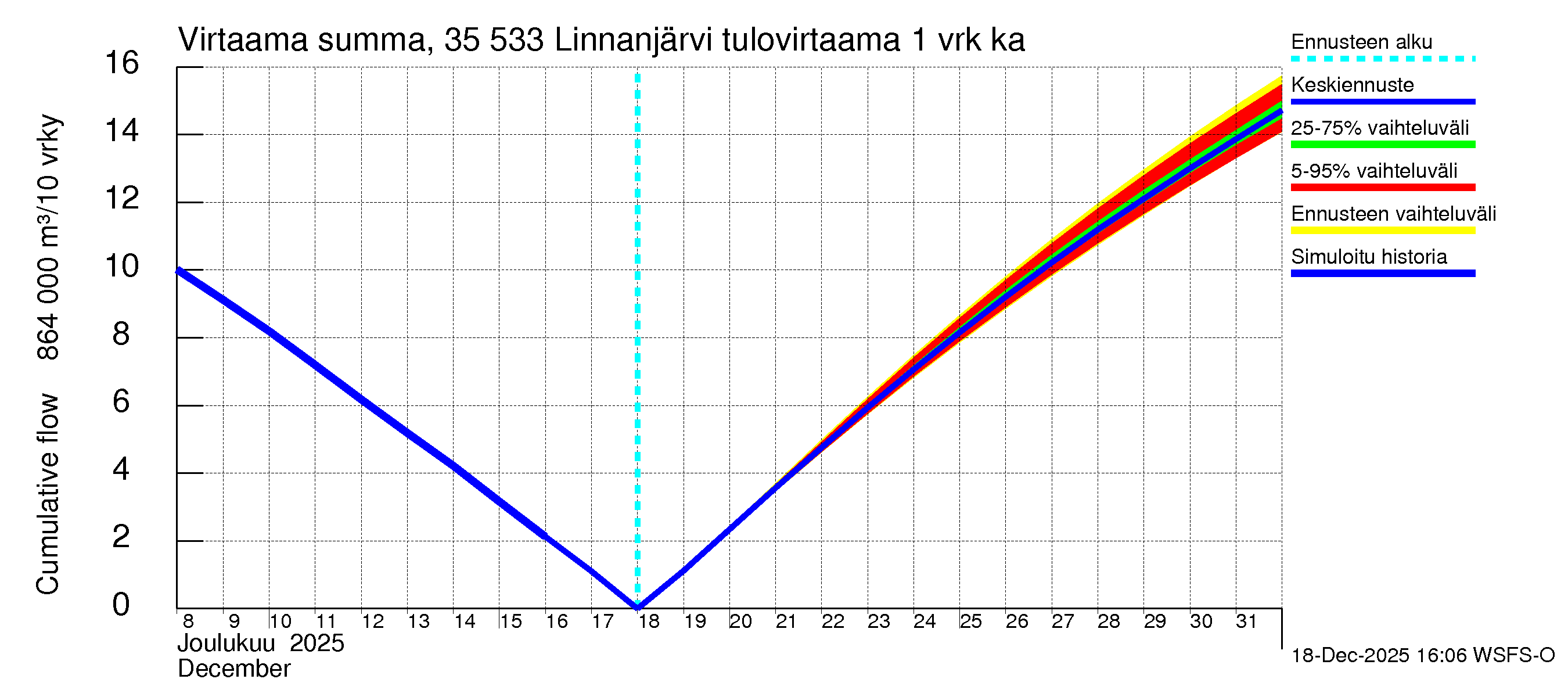 Kokemäenjoen vesistöalue - Linnanjärvi: Tulovirtaama (usean vuorokauden liukuva keskiarvo) - jakaumaennuste