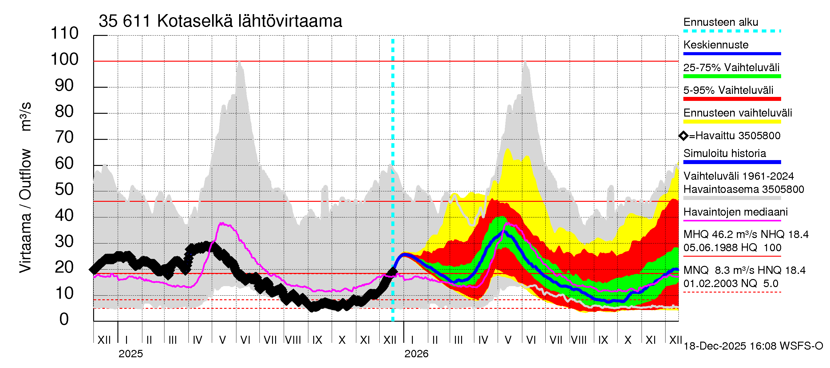 Kokemäenjoen vesistöalue - Kotaselkä: Lähtövirtaama / juoksutus - jakaumaennuste