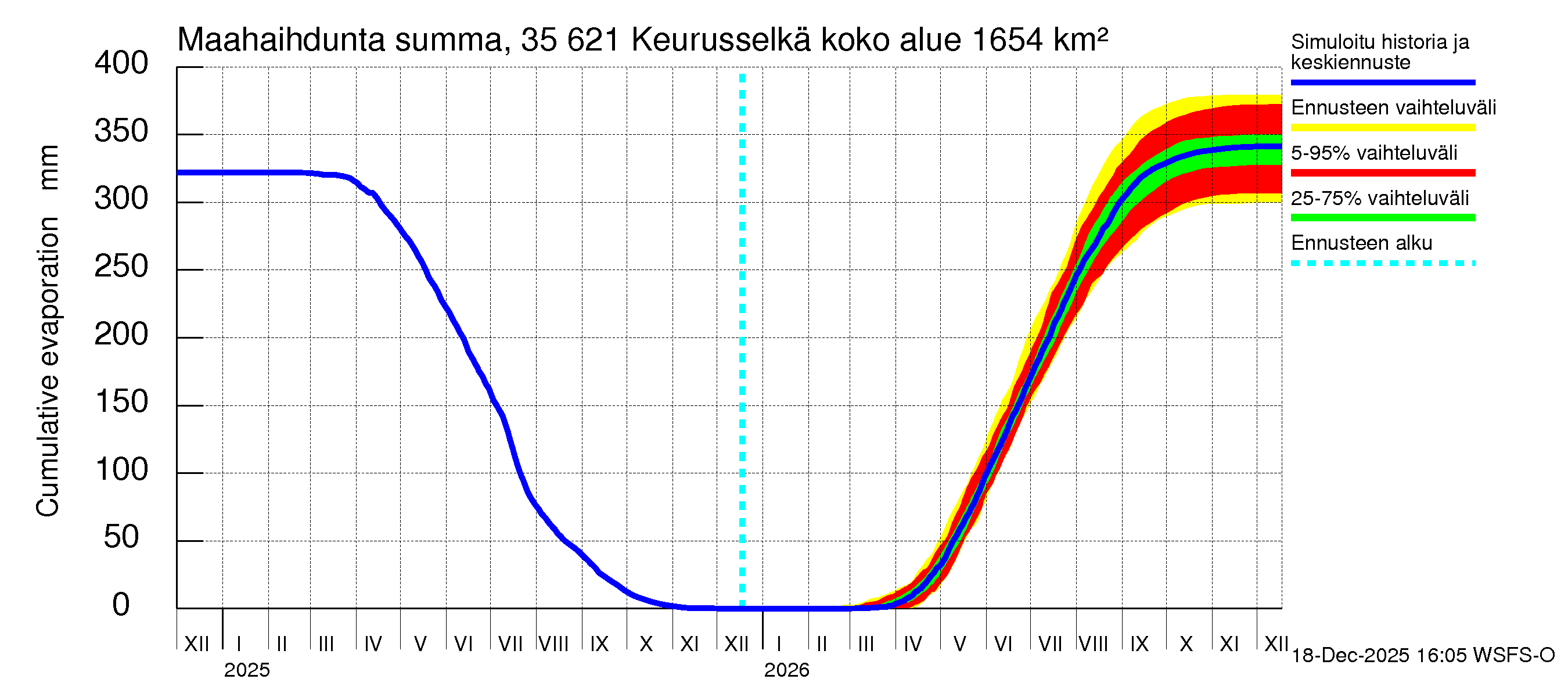 Kokemäenjoen vesistöalue - Keurusselkä: Haihdunta maa-alueelta - summa