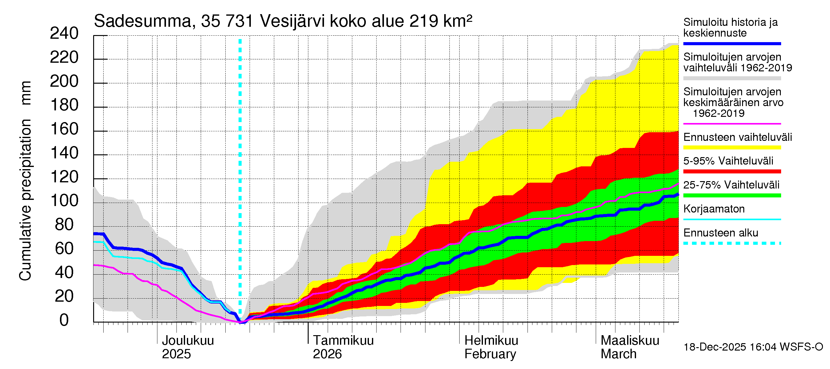 Kokemäenjoen vesistöalue - Vesijärvi: Vedenkorkeus - jakaumaennuste