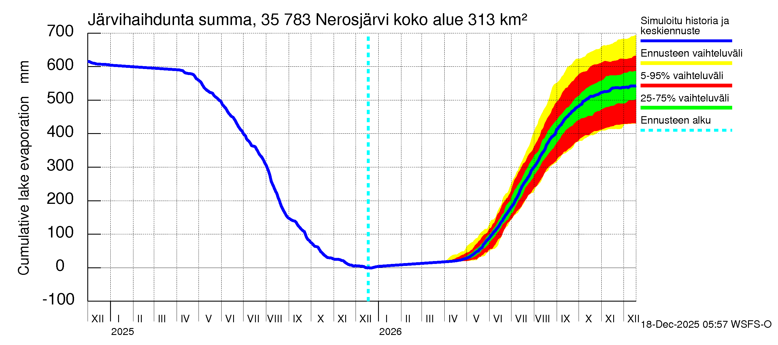 Kokemäenjoen vesistöalue - Nerosjärvi: Järvihaihdunta - summa