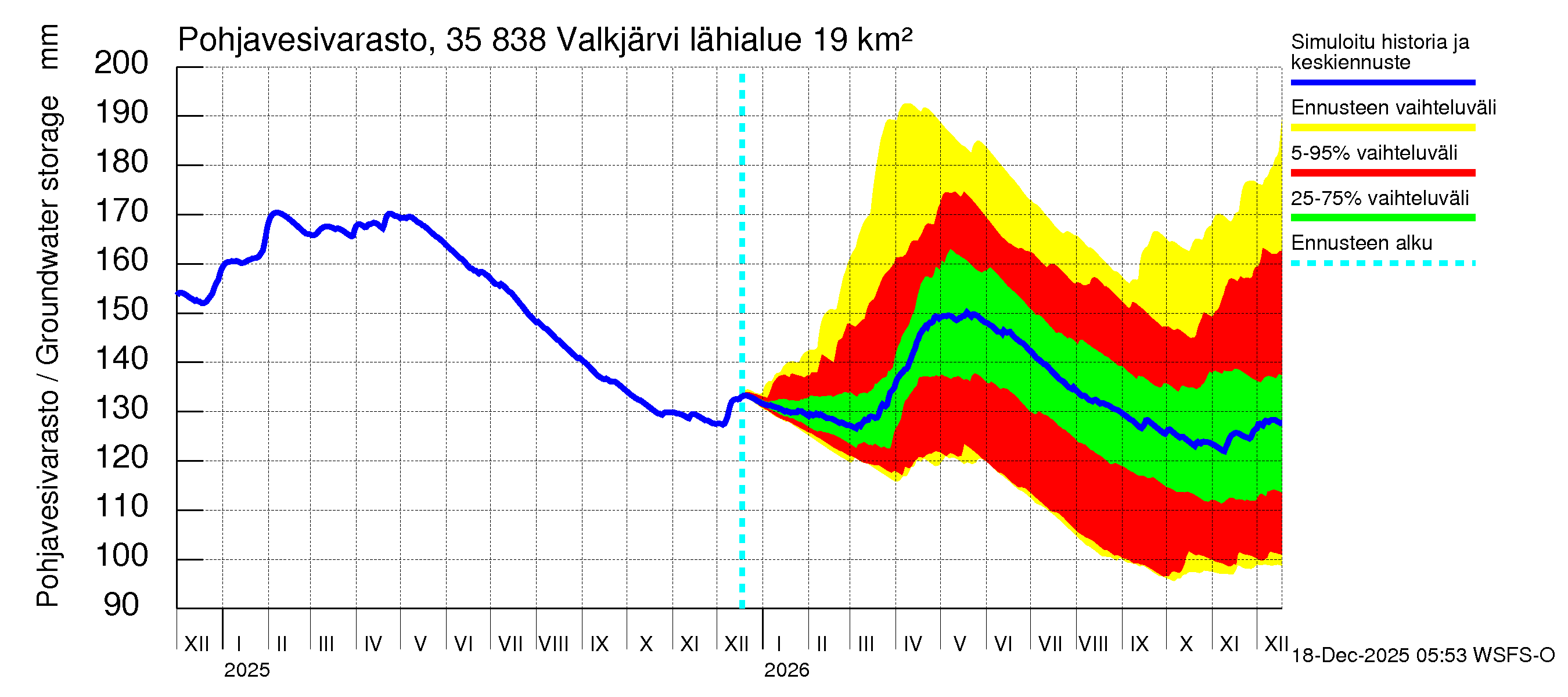 Kokemäenjoen vesistöalue - Valkjärvi: Vedenkorkeus - jakaumaennuste