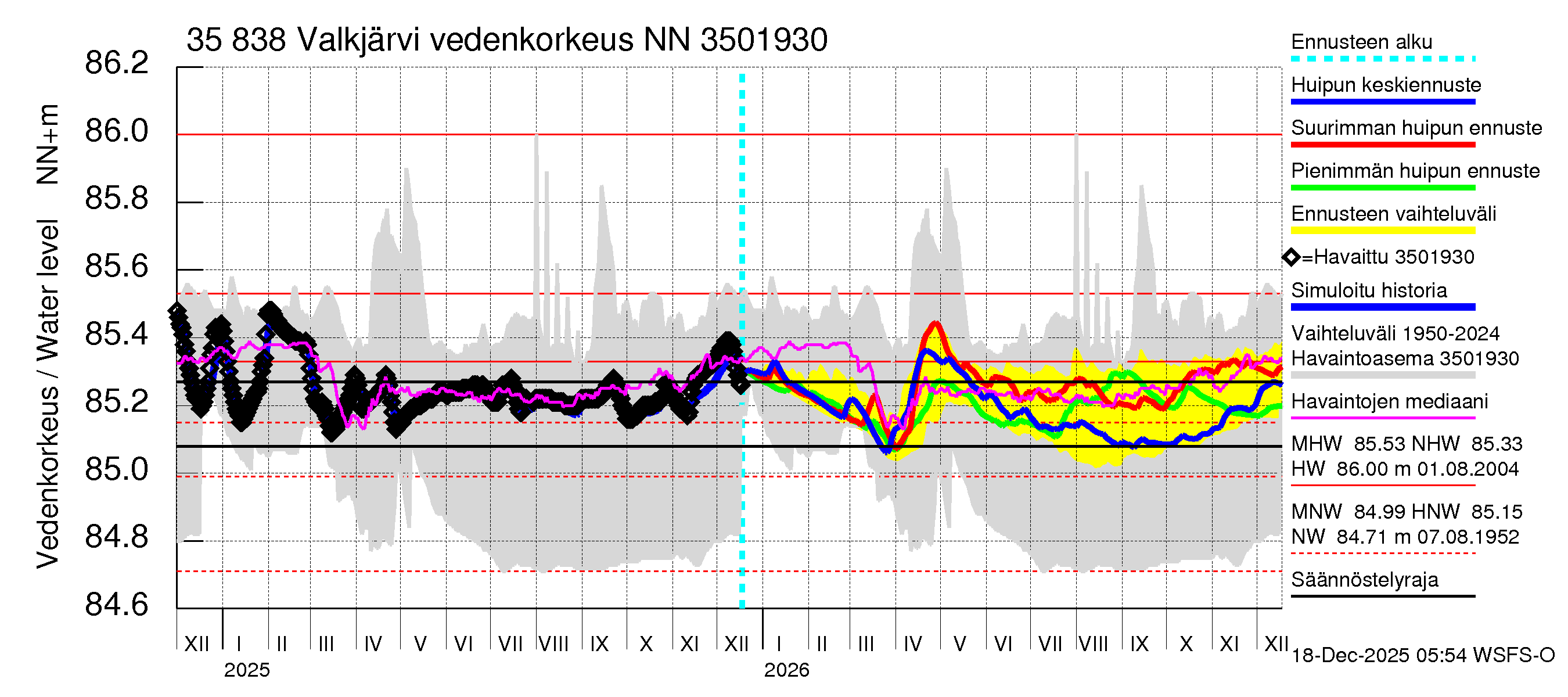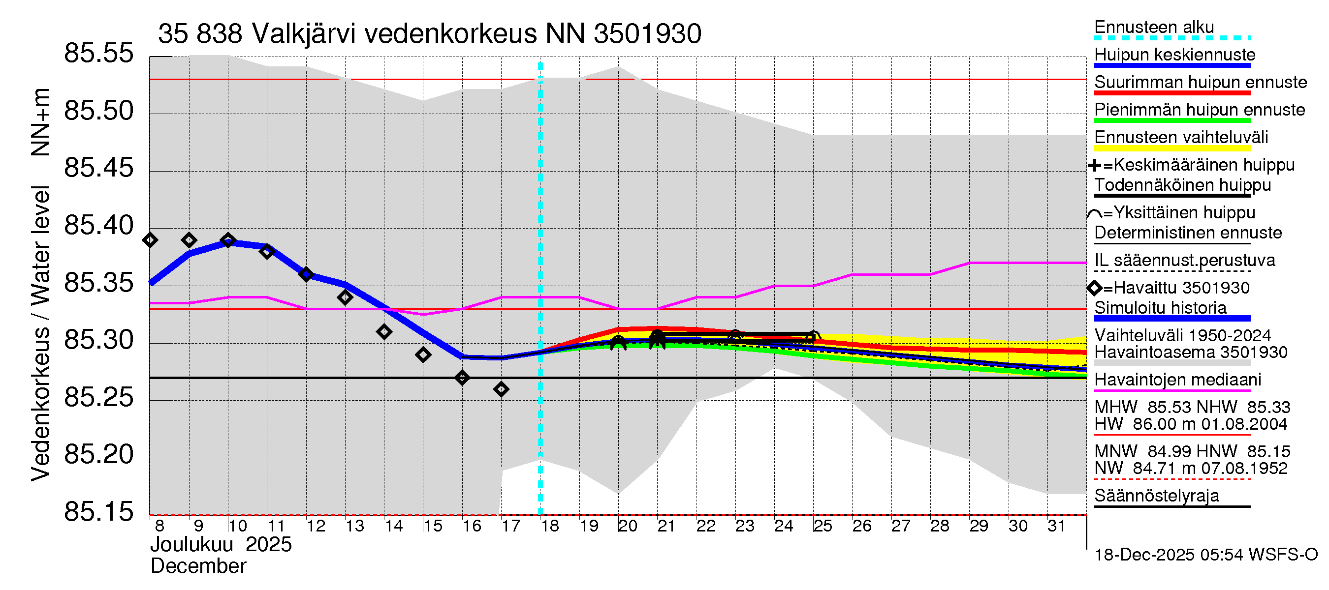 Kokemäenjoen vesistöalue - Valkjärvi: Vedenkorkeus - huippujen keski- ja ääriennusteet