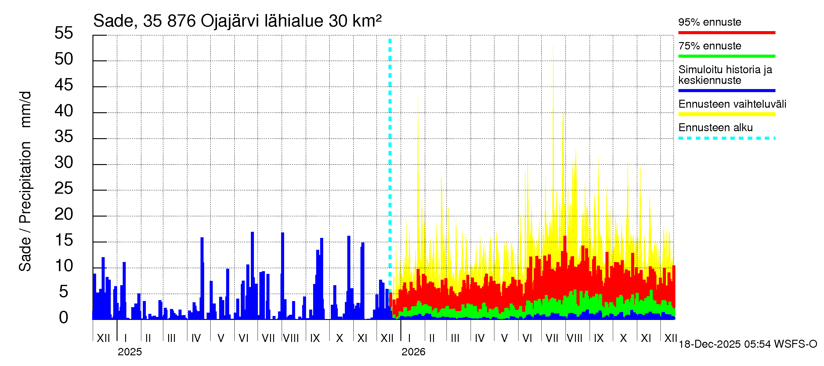 Asiantuntijan työpöytä > Kokemäenjoen vesistöalue > Ojajärvi > Lähivaluma-alue Ennustekuvien tulkinta