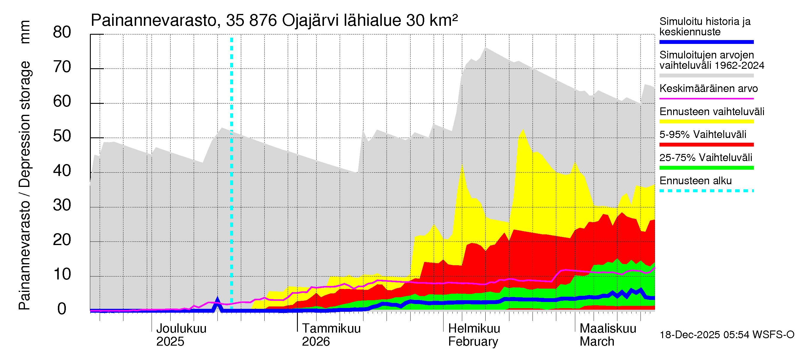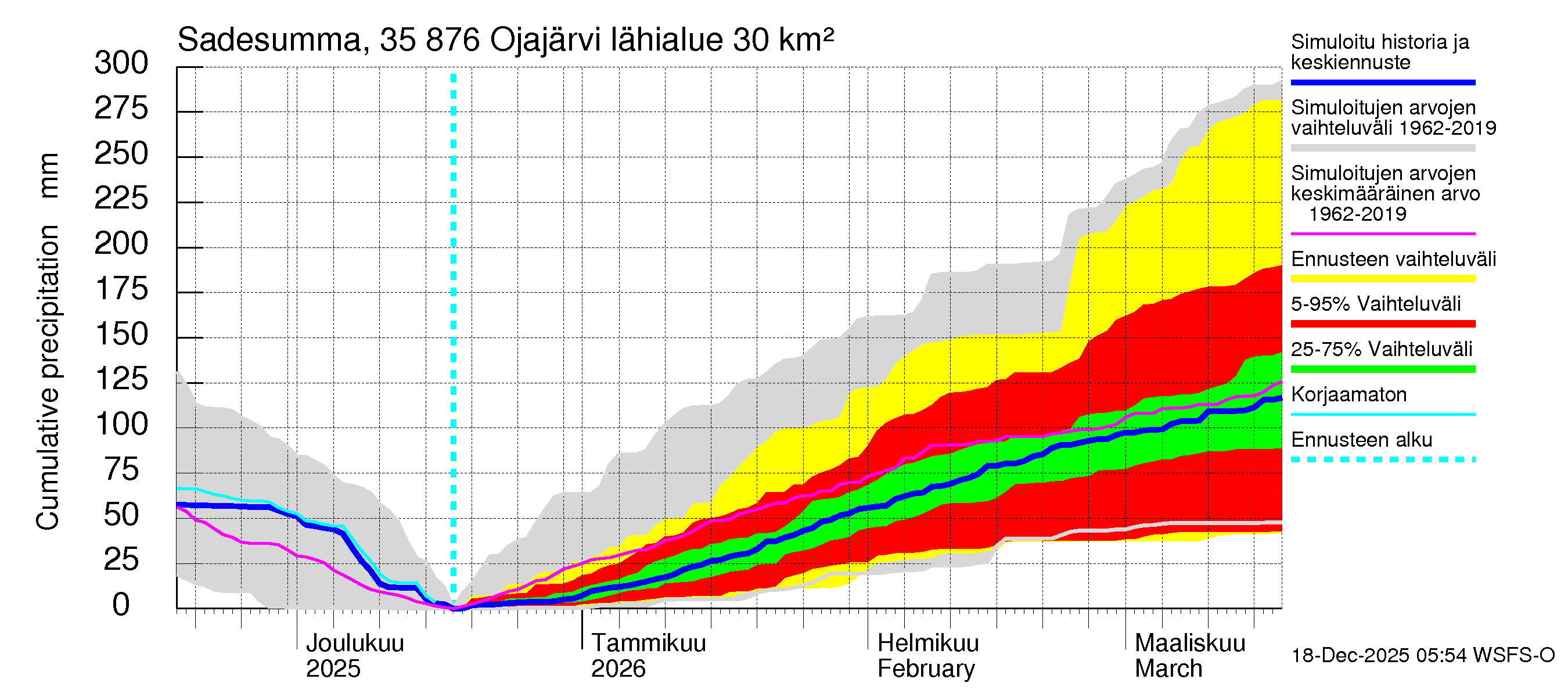 Kokemäenjoen vesistöalue - Ojajärvi: Vedenkorkeus - jakaumaennuste