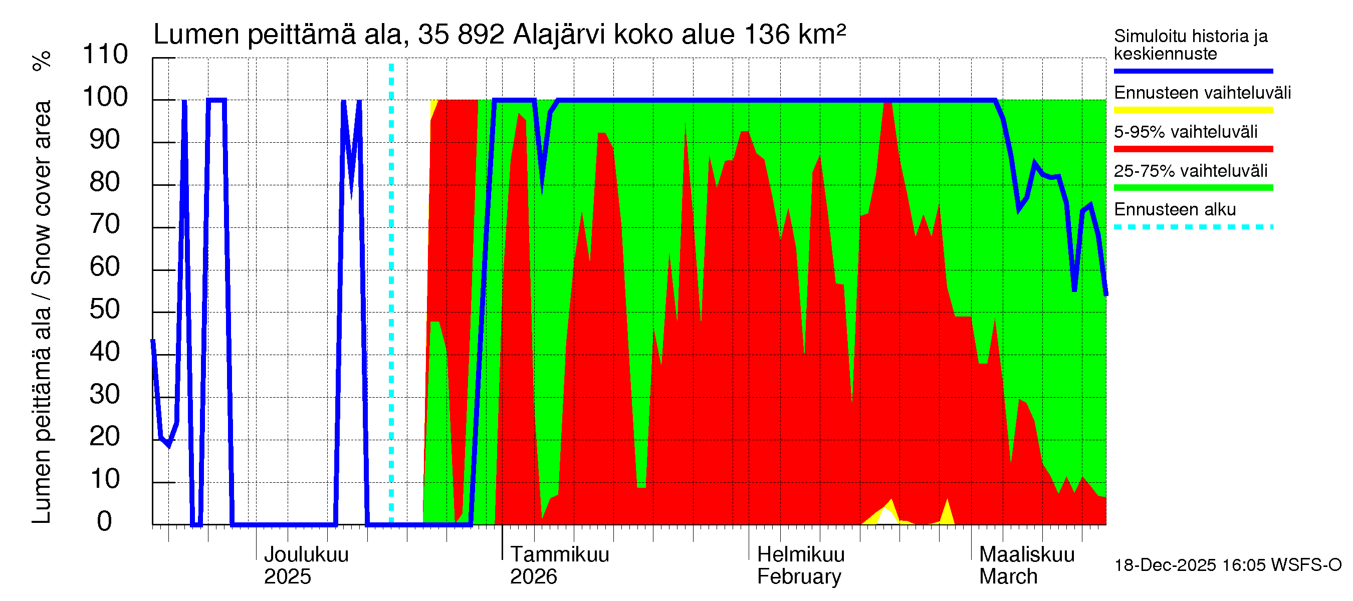 Kokemäenjoen vesistöalue - Alajärvi: Lumen peittämä ala
