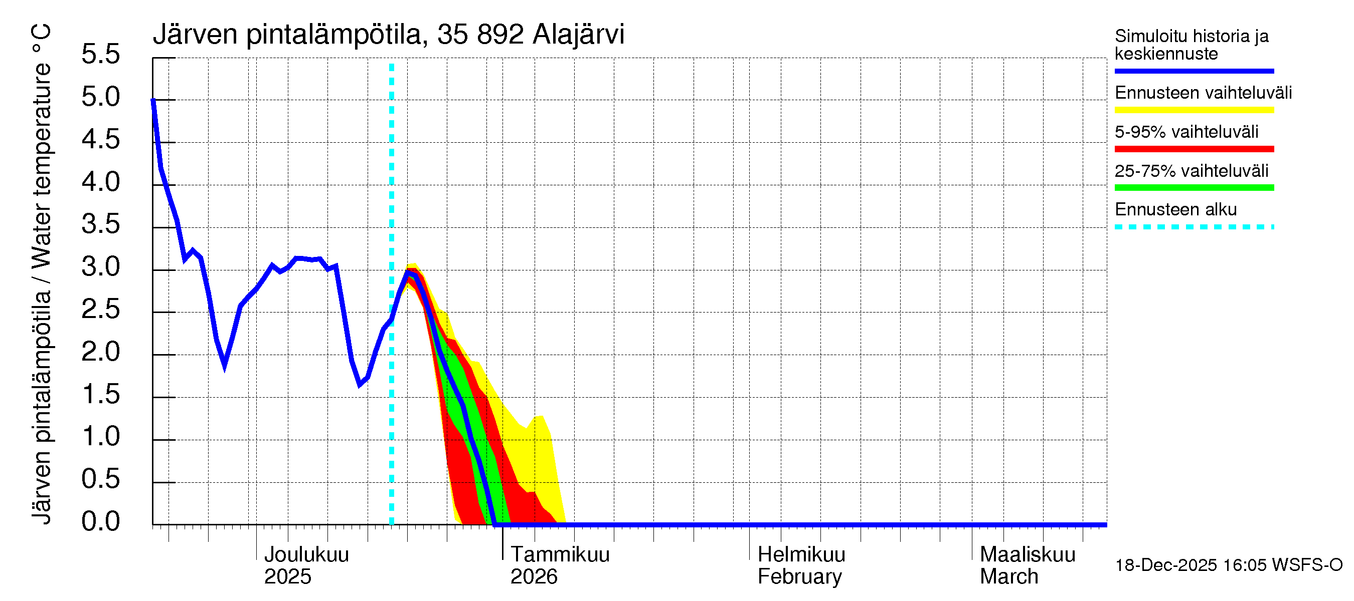 Kokemäenjoen vesistöalue - Alajärvi: Järven pintalämpötila