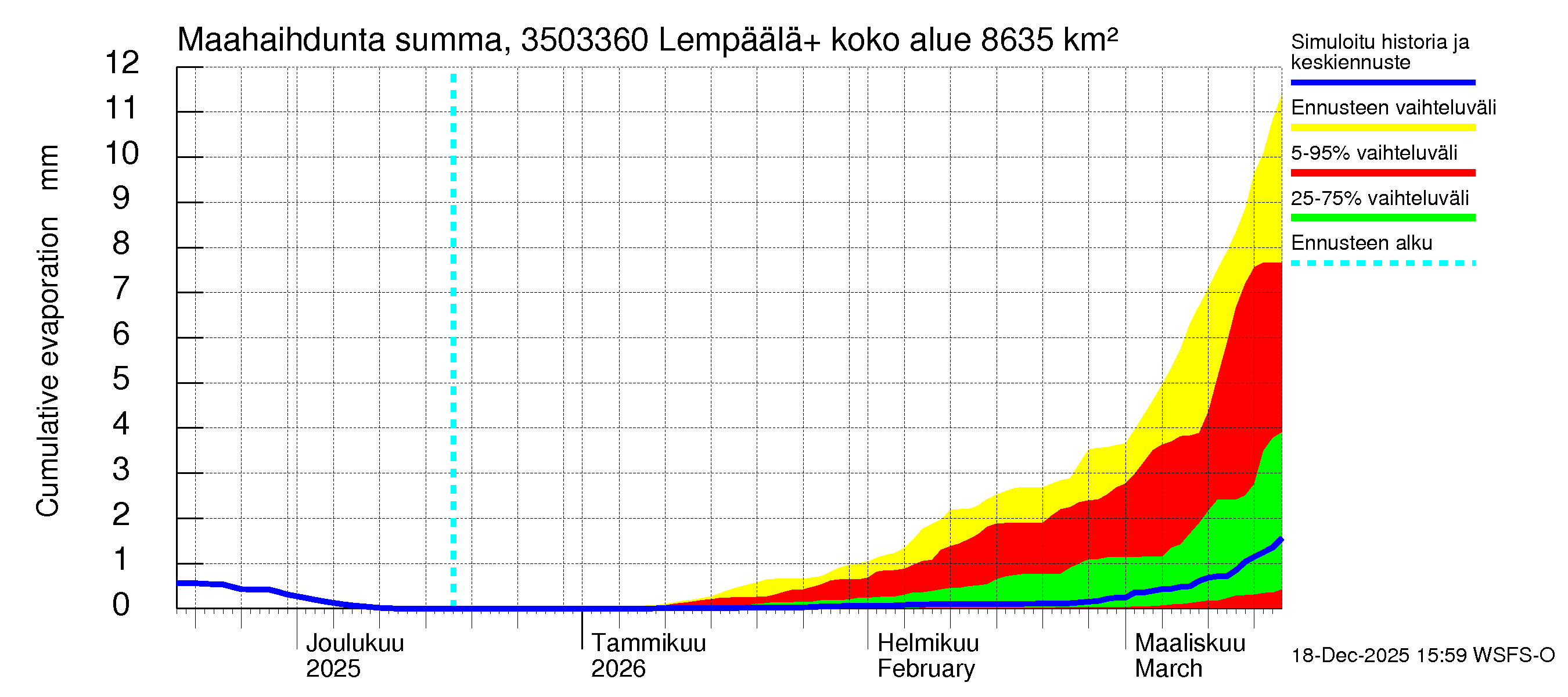 Kokemäenjoen vesistöalue - Lempäälä + Kuokkalankoski: Haihdunta maa-alueelta - summa