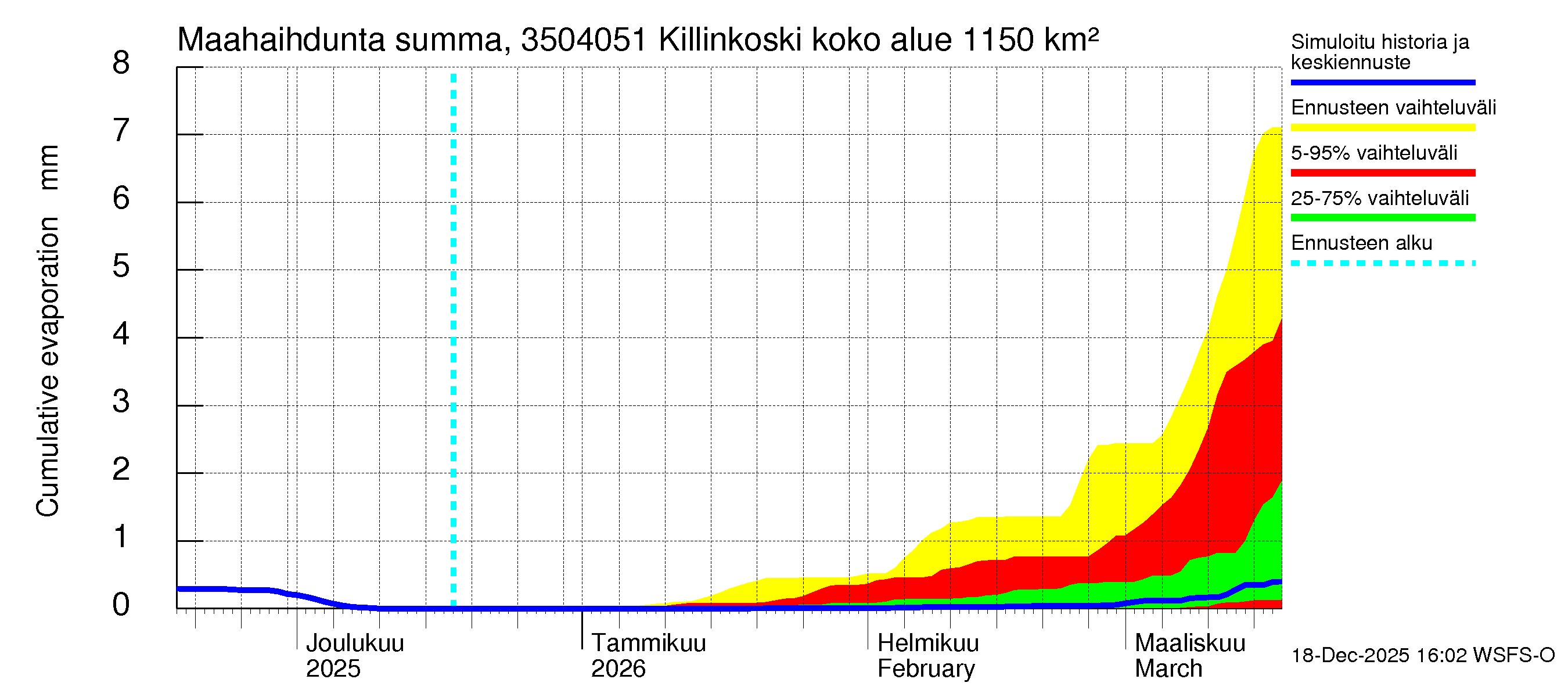 Kokemäenjoen vesistöalue - Killinkoski: Haihdunta maa-alueelta - summa