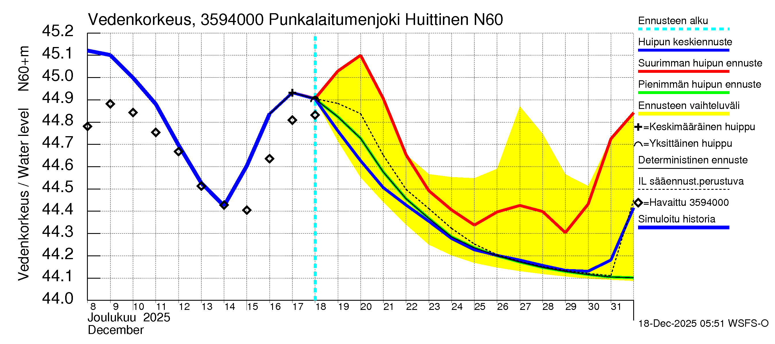 Vedenkorkeus - huippujen keski- ja ääriennusteet