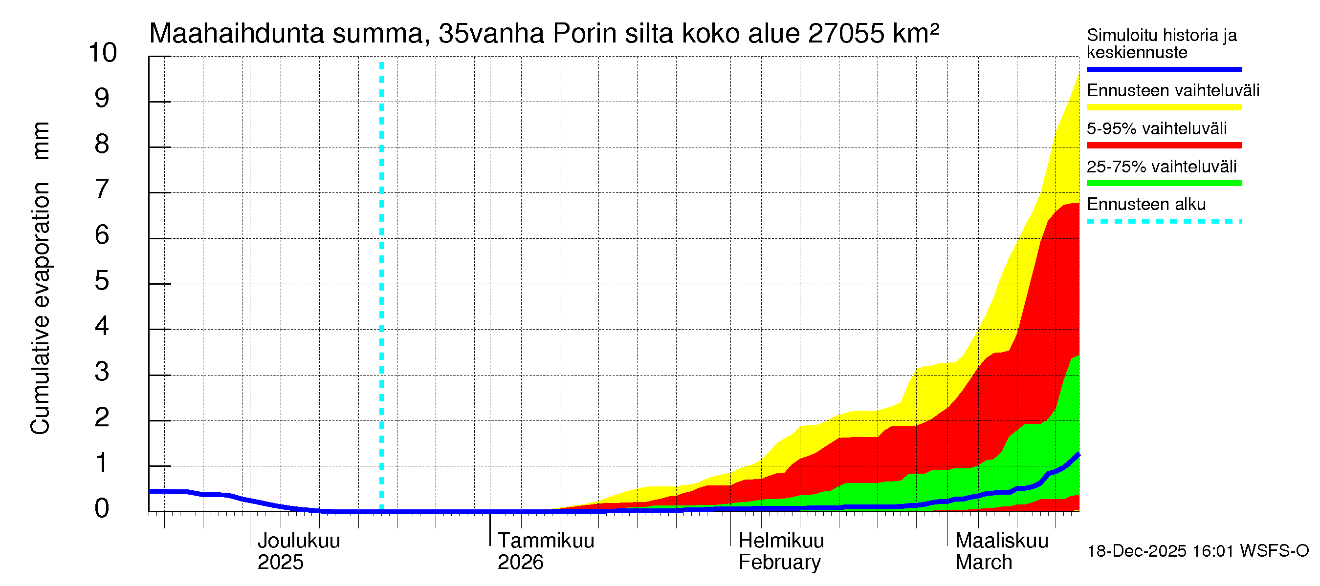 Kokemäenjoen vesistöalue - Porin silta: Haihdunta maa-alueelta - summa