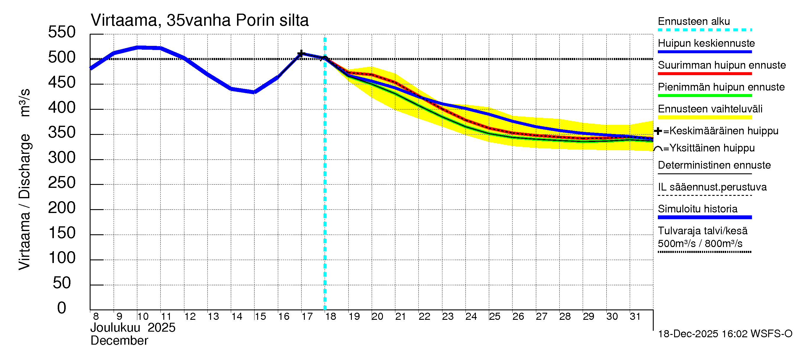 Kokemäenjoen vesistöalue - Porin silta: Virtaama / juoksutus - huippujen keski- ja ääriennusteet