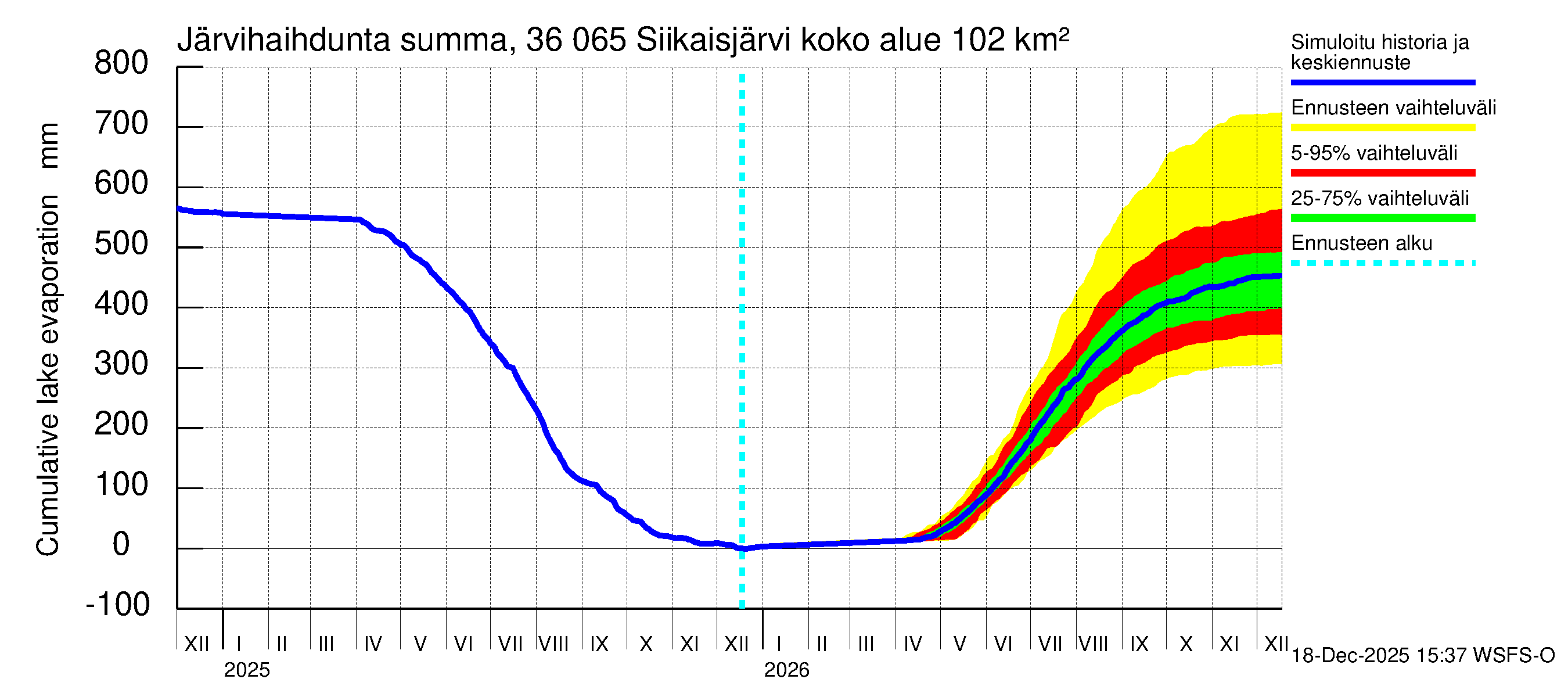 Karvianjoen vesistöalue - Siikaisjärvi: Haihdunta maa-alueelta - summa