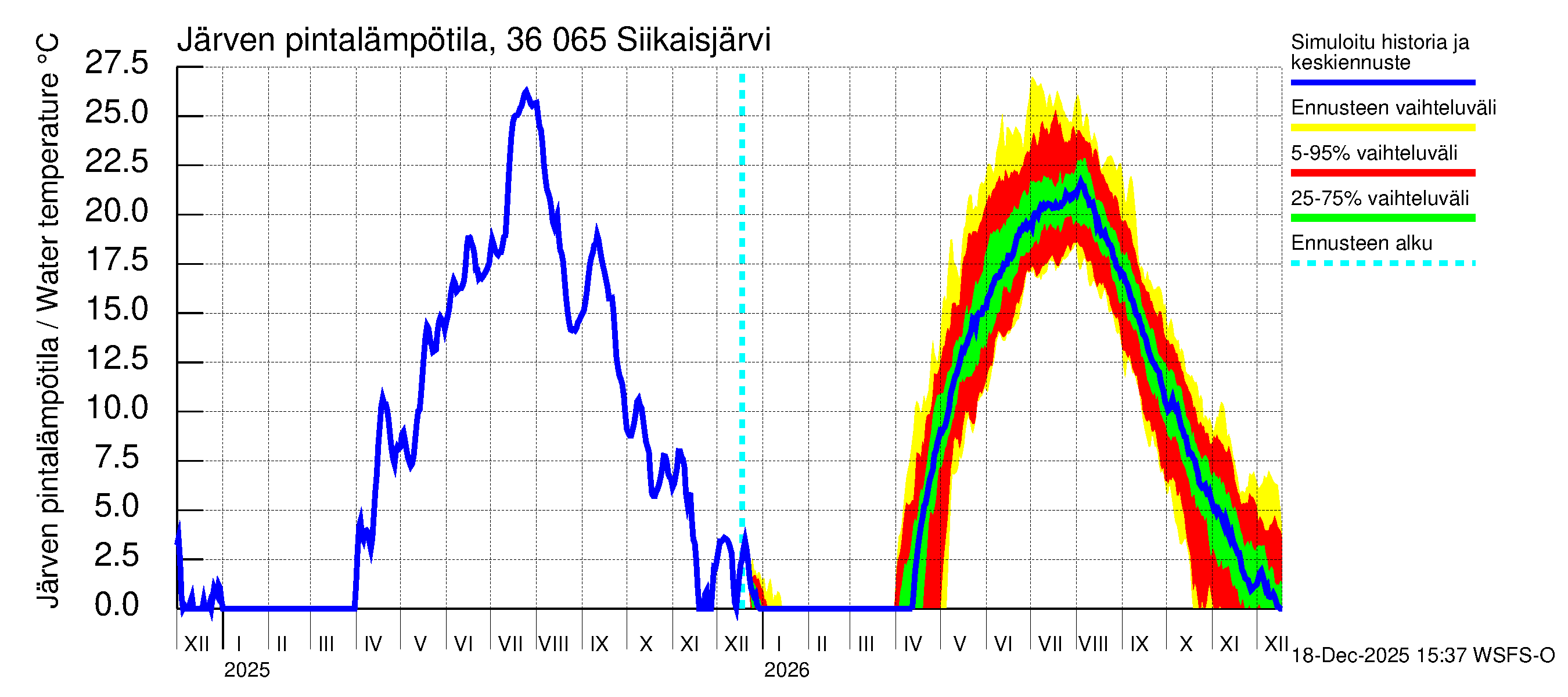 Karvianjoen vesistöalue - Siikaisjärvi: Järven pintalämpötila