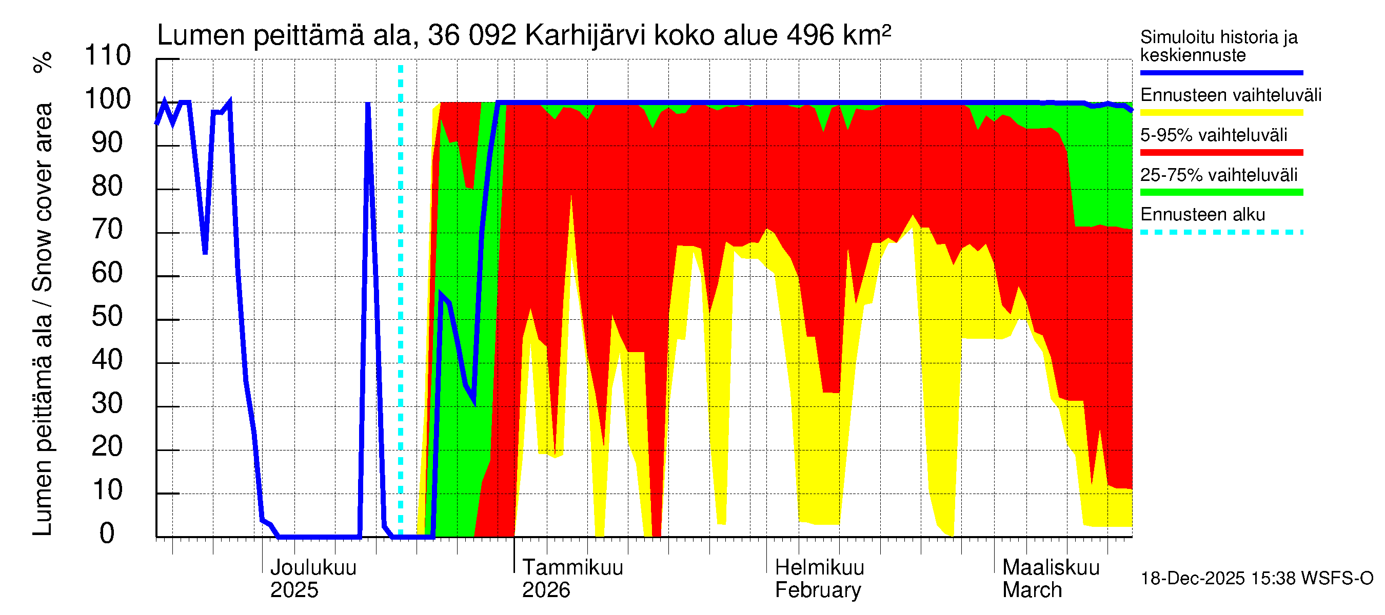 Karvianjoen vesistöalue - Karhijärvi: Lumen peittämä ala