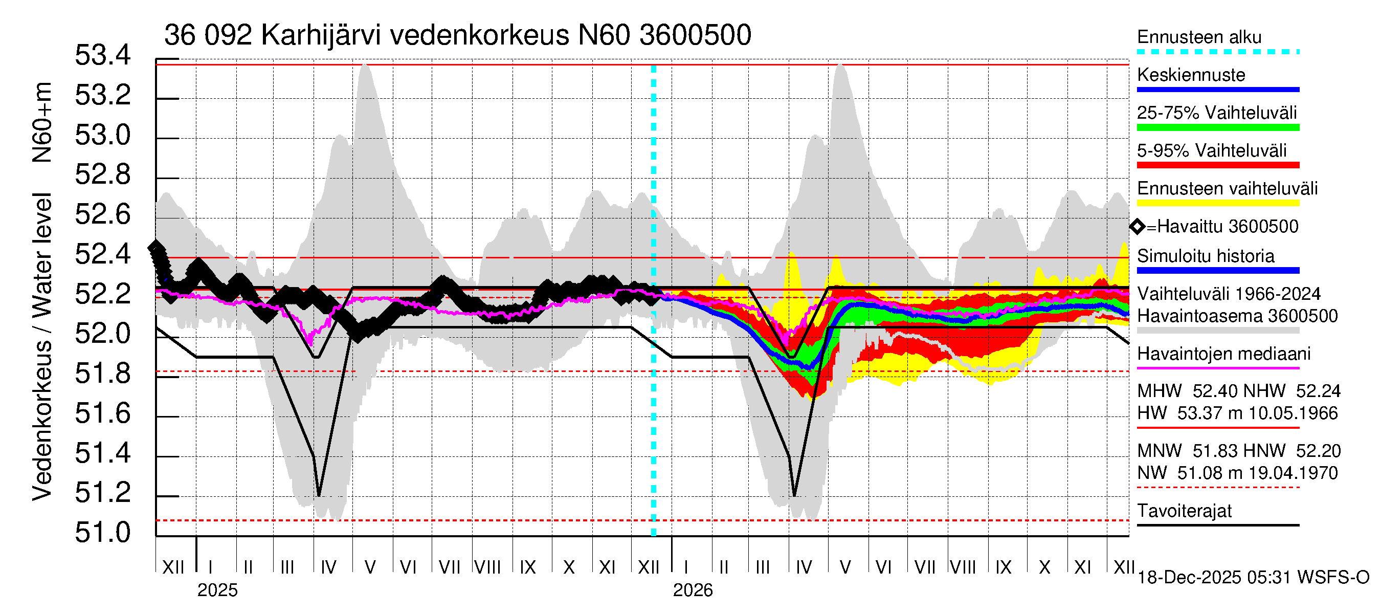 Karvianjoen vesistöalue - Karhijärvi: Vedenkorkeus - jakaumaennuste