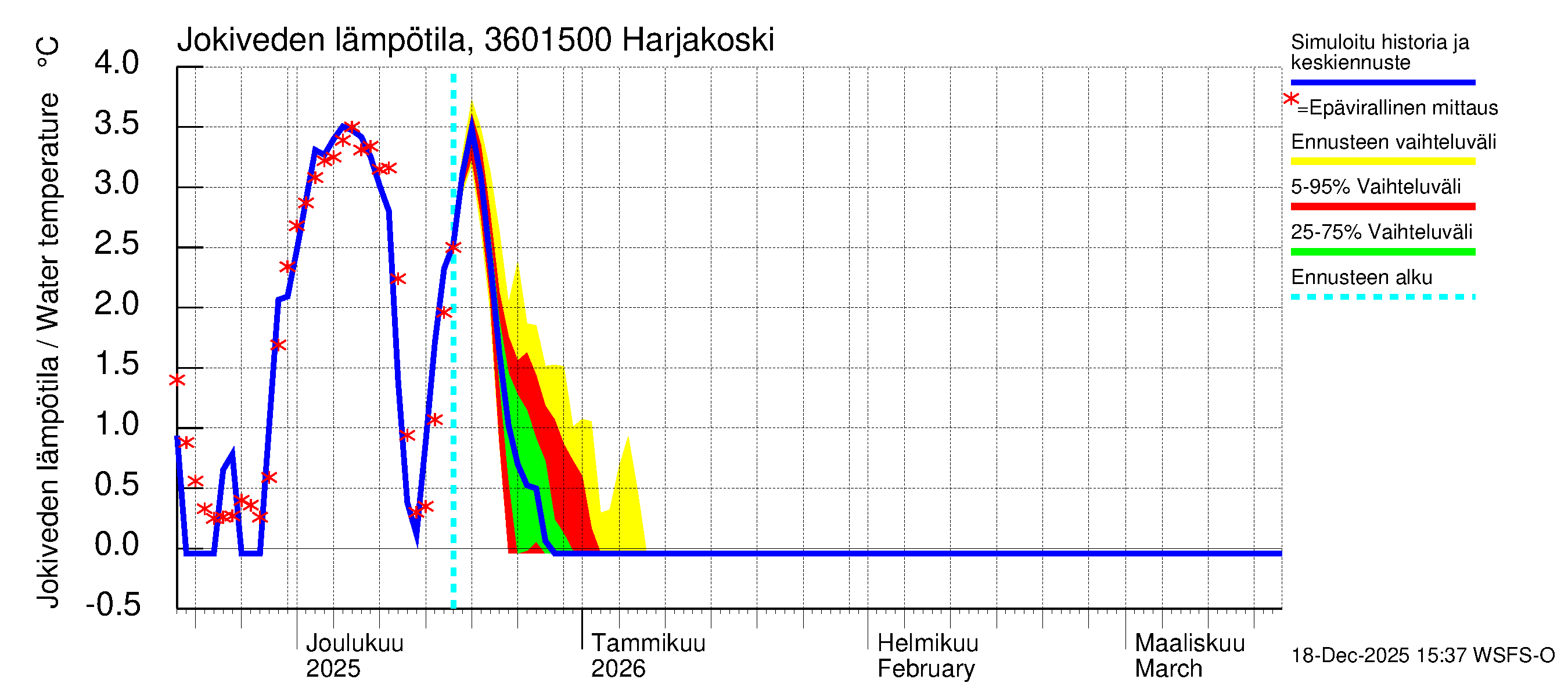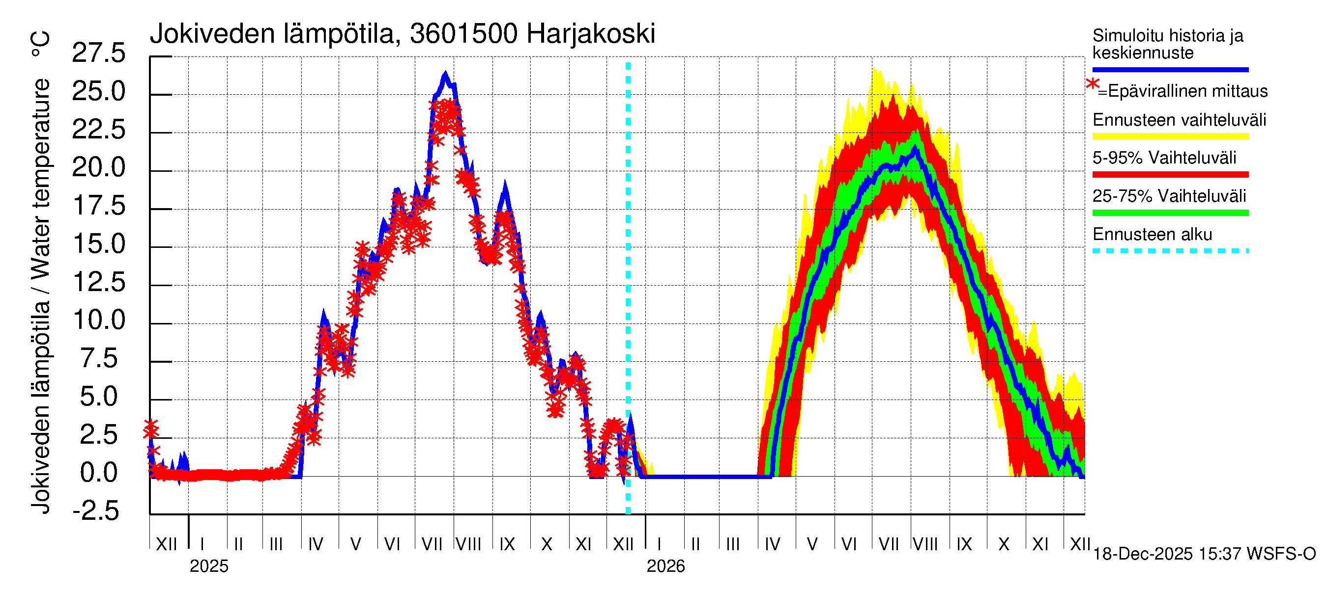 Karvianjoen vesistöalue - Kynäsjoki Harjakoski: Jokiveden lämpötila