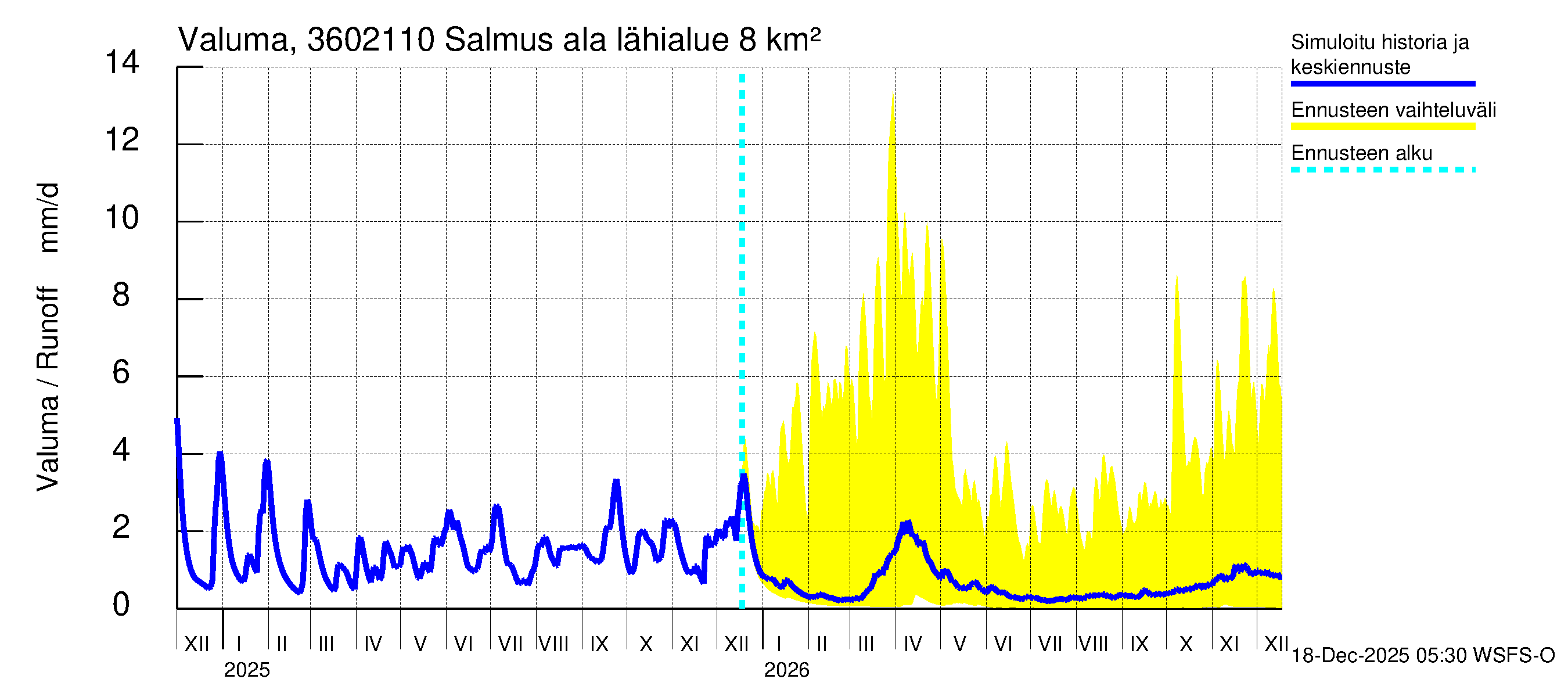 Asiantuntijan työpöytä > Karvianjoen vesistöalue > Salmus ala > Lähivaluma-alue Ennustekuvien tulkinta
