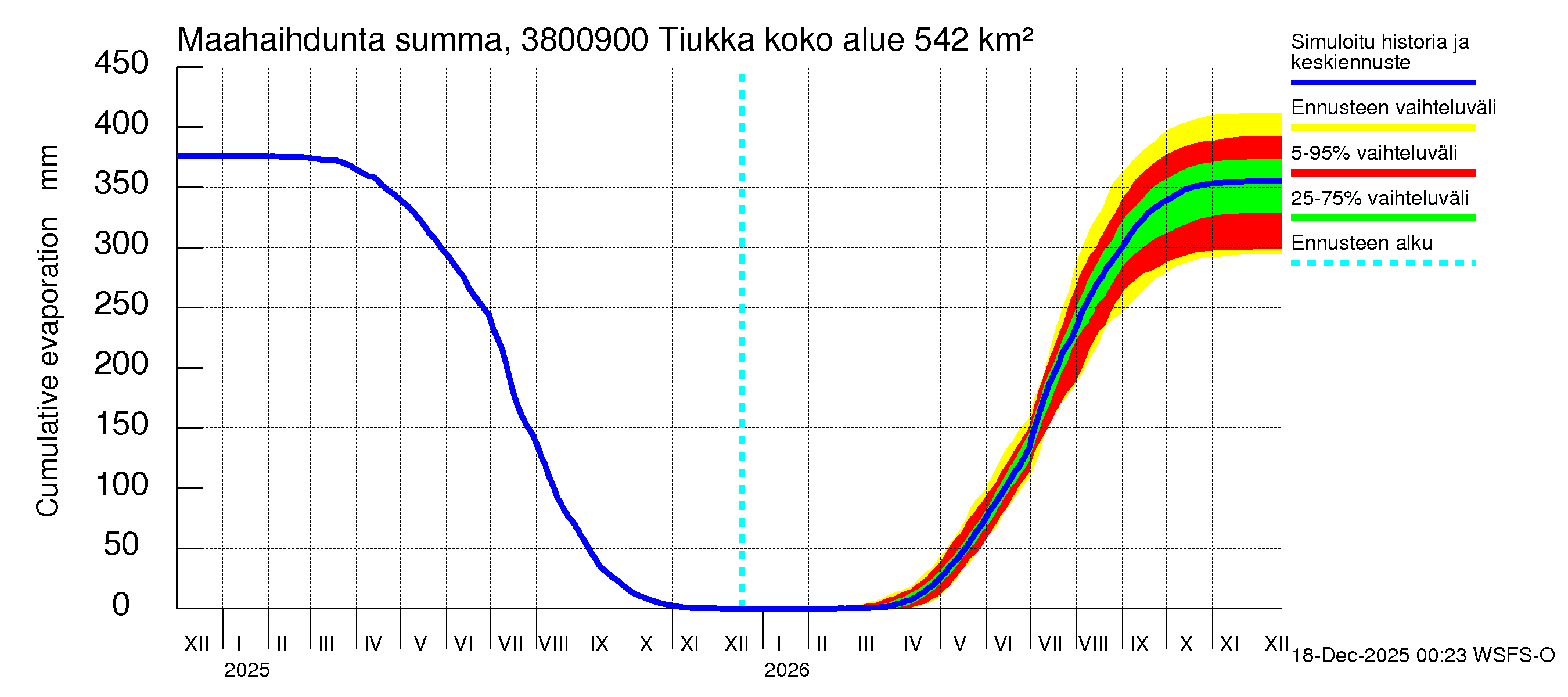 Teuvanjoen vesistöalue - Tiukka: Haihdunta maa-alueelta - summa