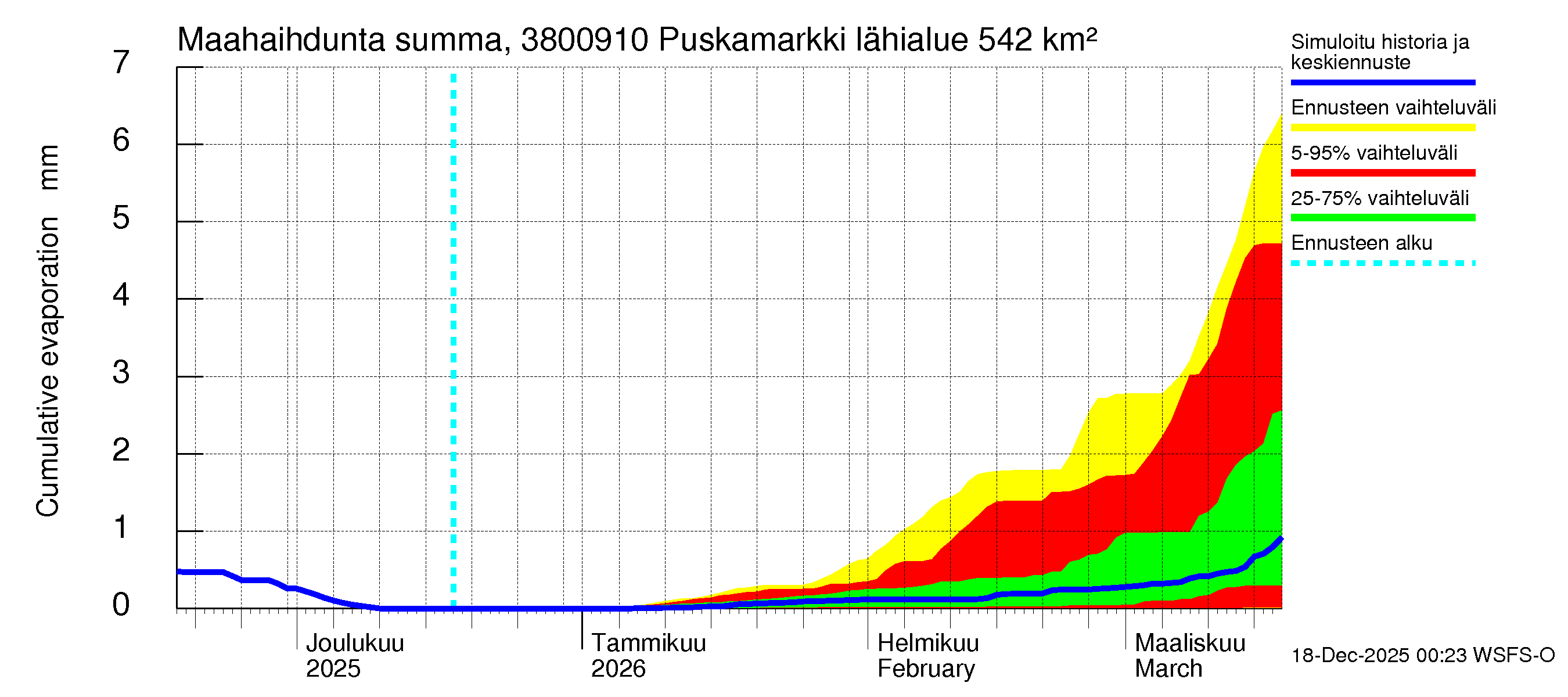 Teuvanjoen vesistöalue - Puskamarkki: Haihdunta maa-alueelta - summa