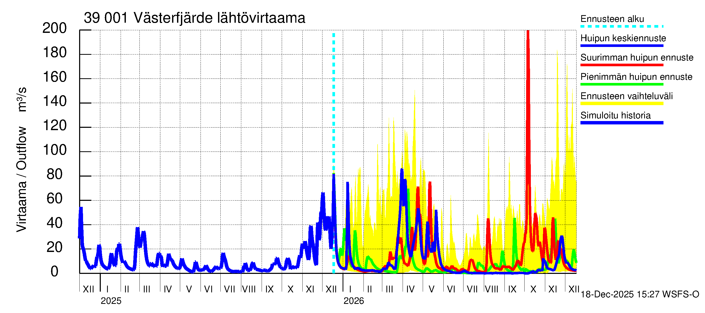 Lähtövirtaama / juoksutus - huippujen keski- ja ääriennusteet