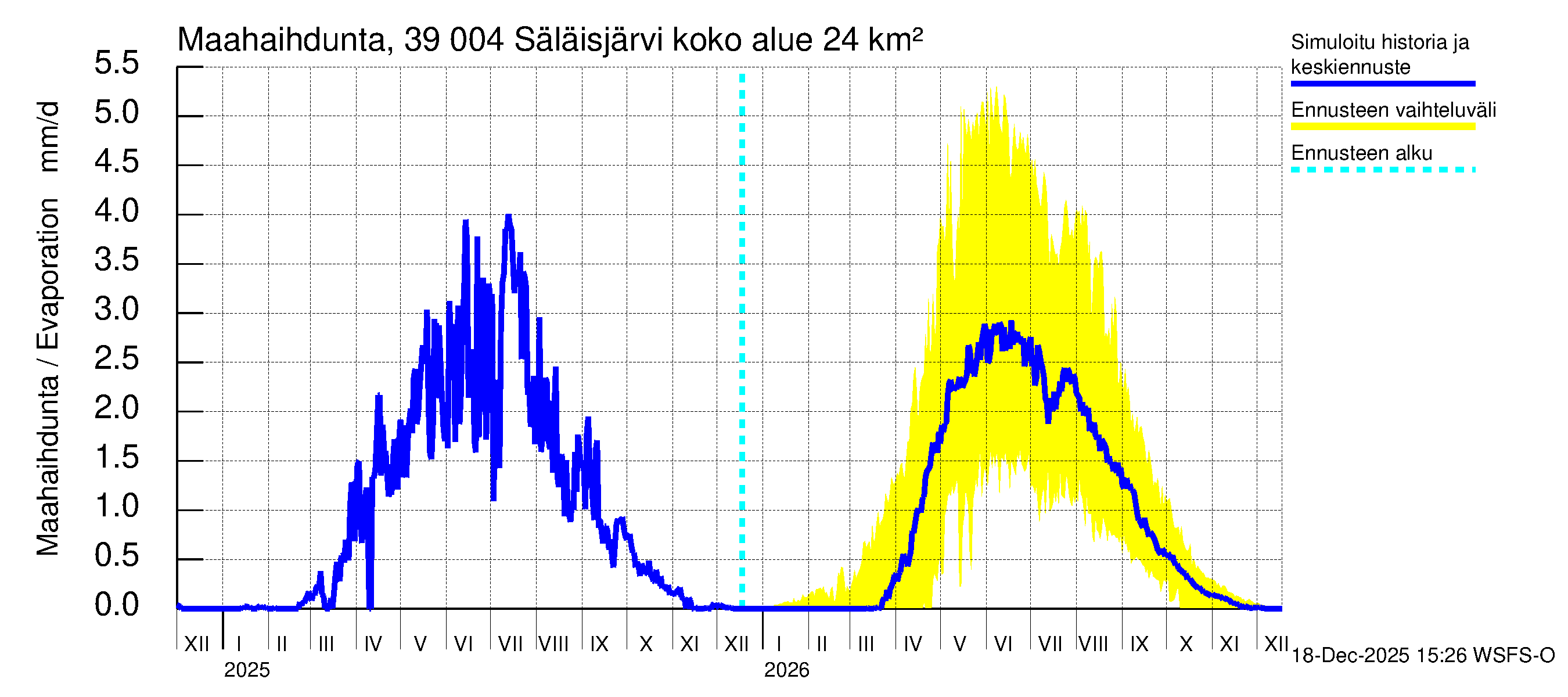 Närpiönjoen vesistöalue - Säläisjärvi: Haihdunta maa-alueelta - summa